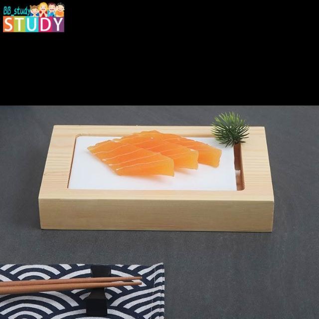 日式刺身專用冰盤 長方形魚生專用冰板搭配木託 海鮮冰盒 鮭魚冰蝶 菜品裝飾 壽司盤 海鮮盤專用 干冰密胺盤子