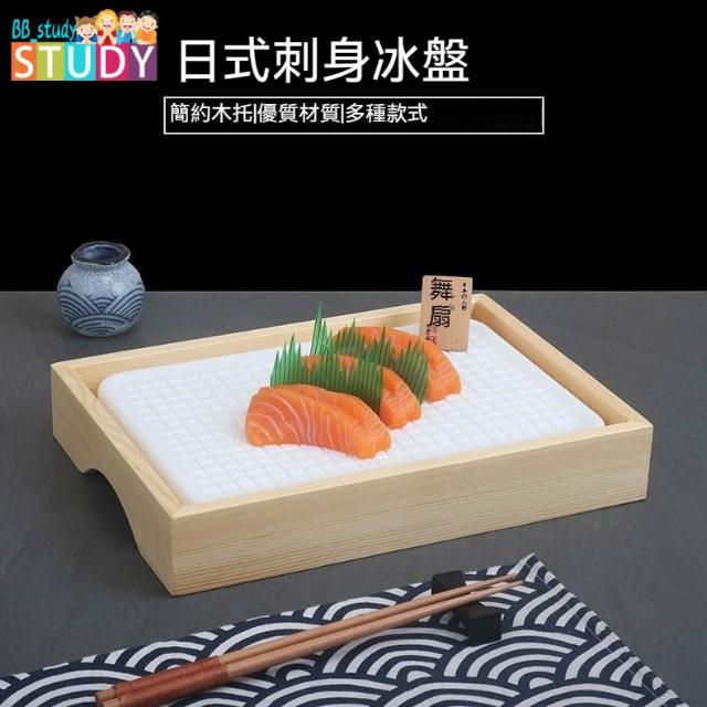 日式刺身專用冰盤 長方形魚生專用冰板搭配木託 海鮮冰盒 鮭魚冰蝶 菜品裝飾 壽司盤 海鮮盤專用 干冰密胺盤子