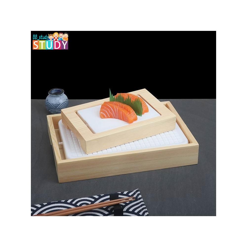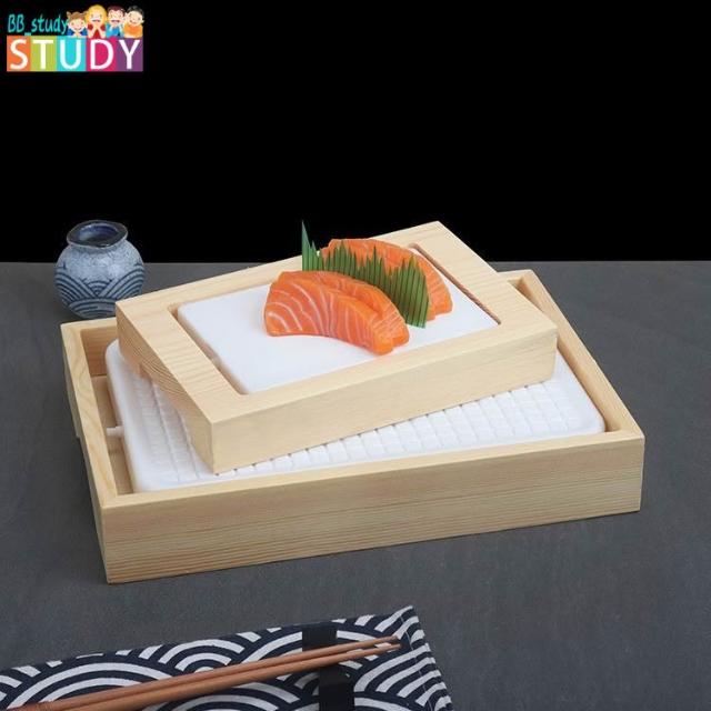 日式刺身專用冰盤 長方形魚生專用冰板搭配木託 海鮮冰盒 鮭魚冰蝶 菜品裝飾 壽司盤 海鮮盤專用 干冰密胺盤子