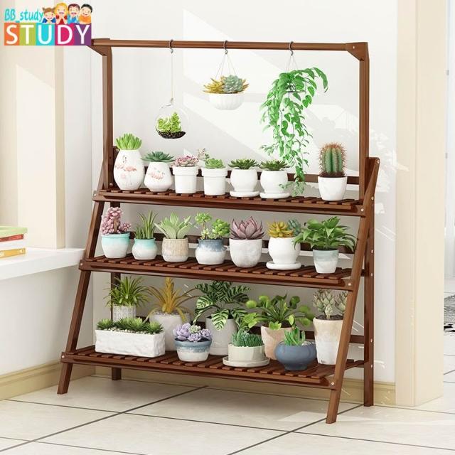 陽台階梯式多層花架 客廳落地綠蘿花盆架實木置物架 多肉花卉架子 窗台花架 木質花架 落地式花架 階梯花盆架 台沿 花架