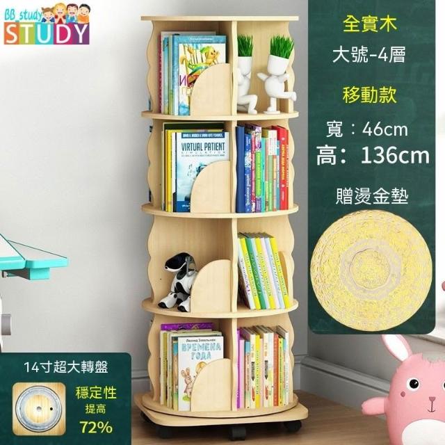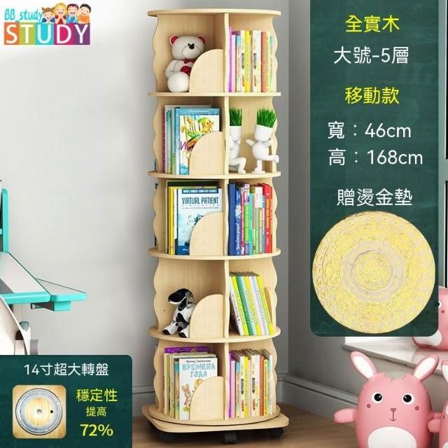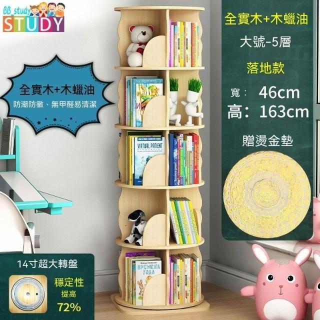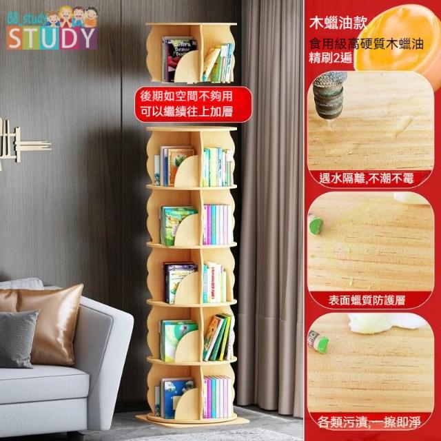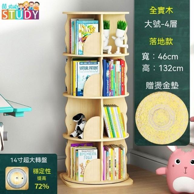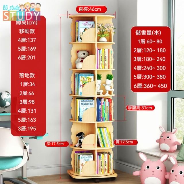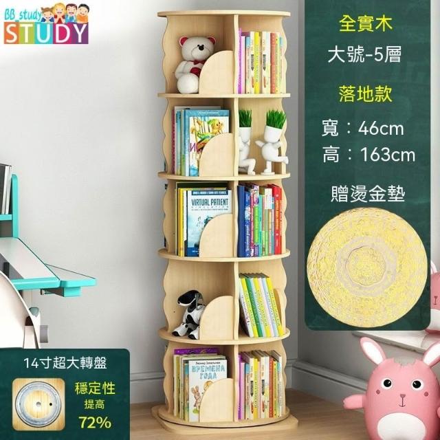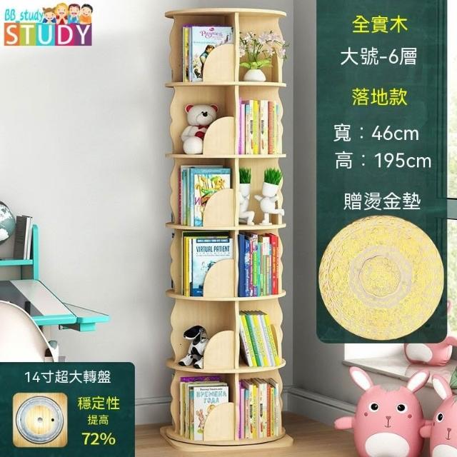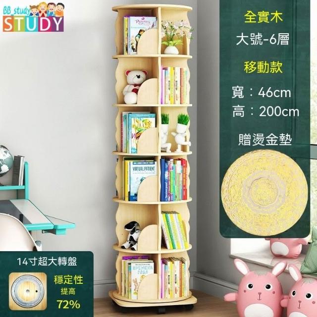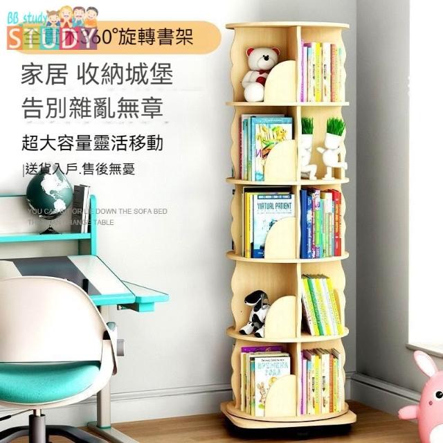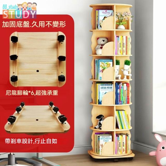 熱賣兒童實木旋轉書架 客廳落地家用 收納架簡易多層臥室360°度學生書櫃 實木置物架 展示書架 直立式櫃子客廳書櫃