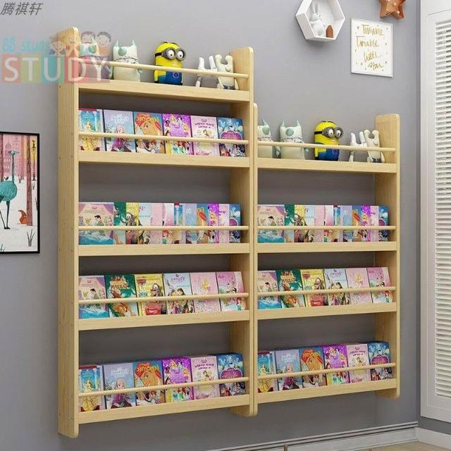 兒童書架 繪本架實木壁掛簡易書櫃 小書架 墻上置物架 學生幼稚園書架 繪本架 多層儲物架 掛墻書架 壁掛書架