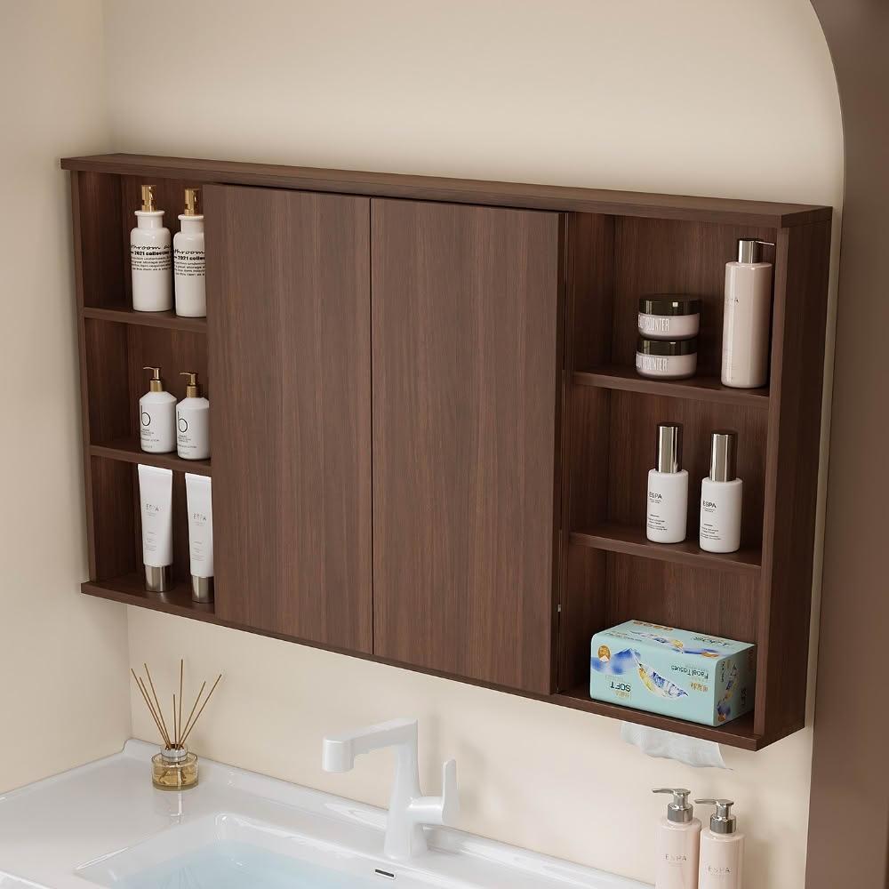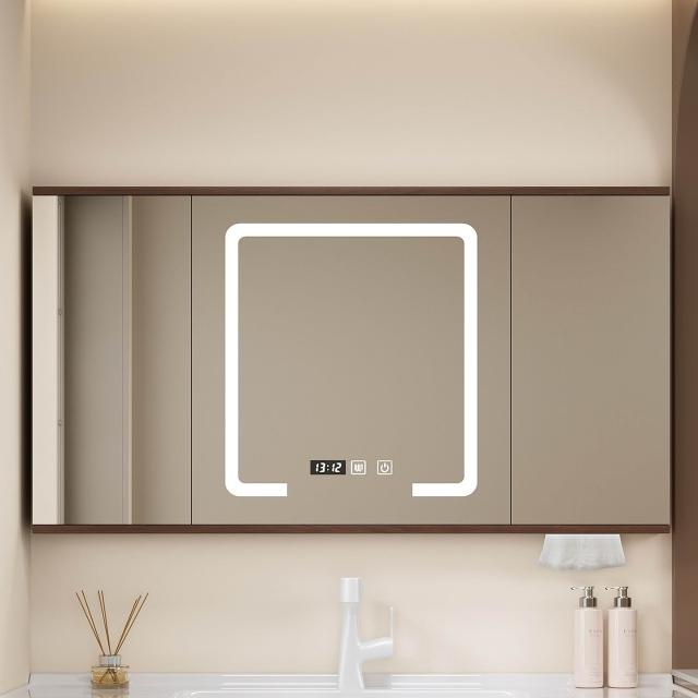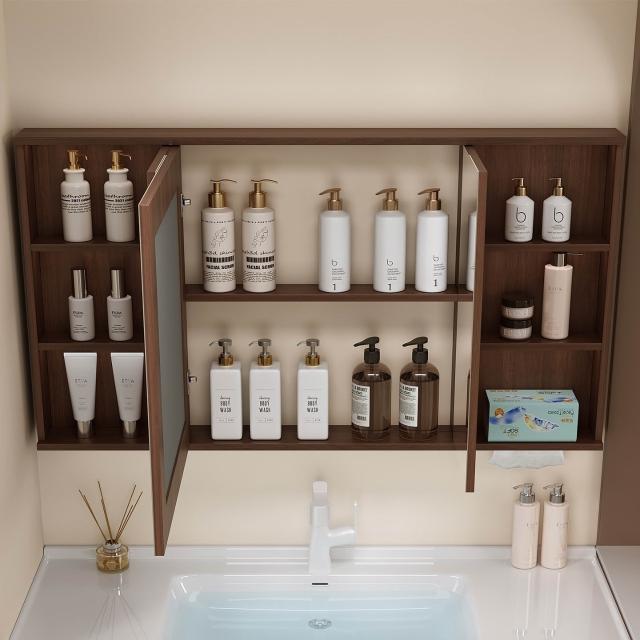 ✨破損補寄✨胡桃色實木智能折疊翻轉鏡櫃隱藏式風水鏡櫃單獨推拉式鏡櫃置物架