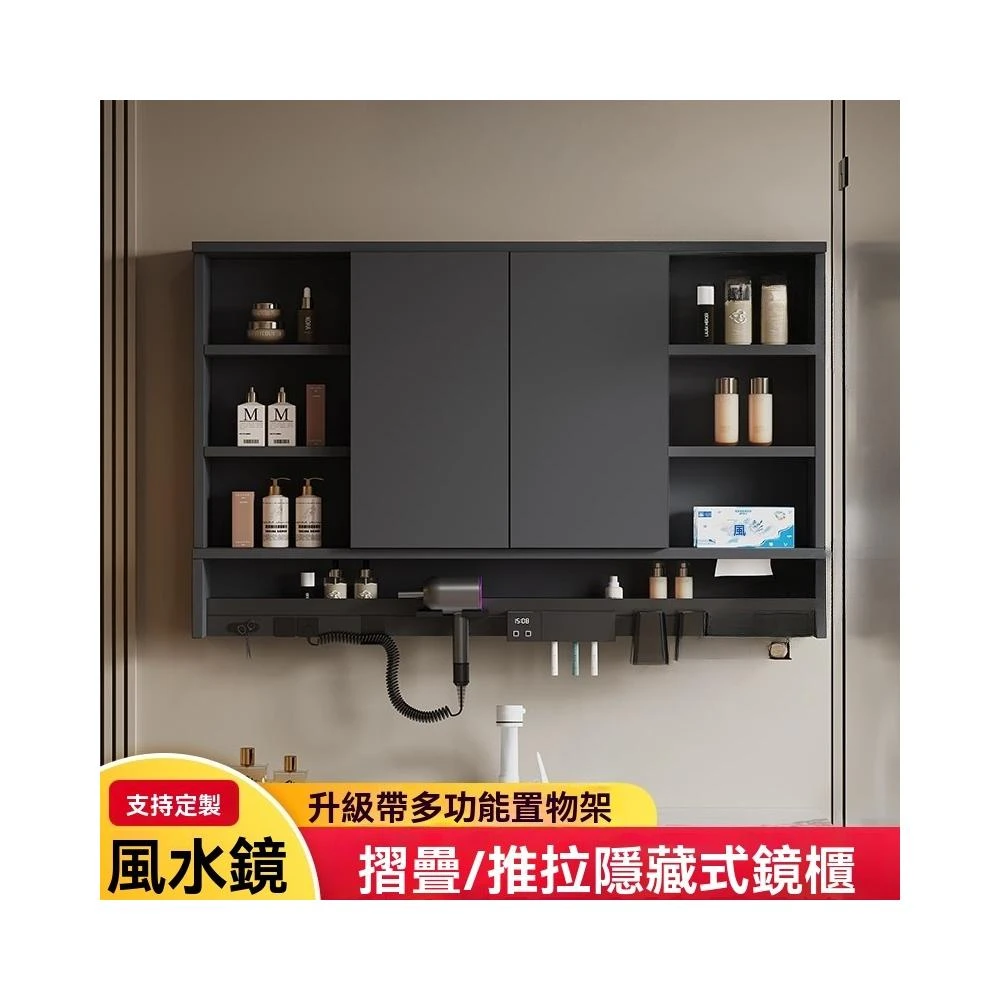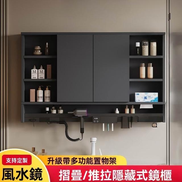 🎊新款下殺🎊智能風水鏡隱藏式浴室鏡櫃衛生間推拉鏡子單獨掛牆式實木摺疊鏡箱