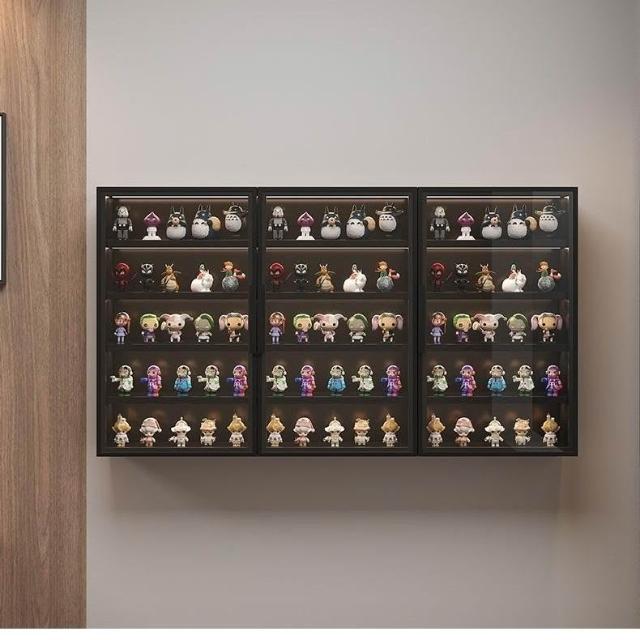 手辦櫃玻璃家用透明展示櫃玩具多層陳列櫃模型靠牆帶燈盲盒櫃定制