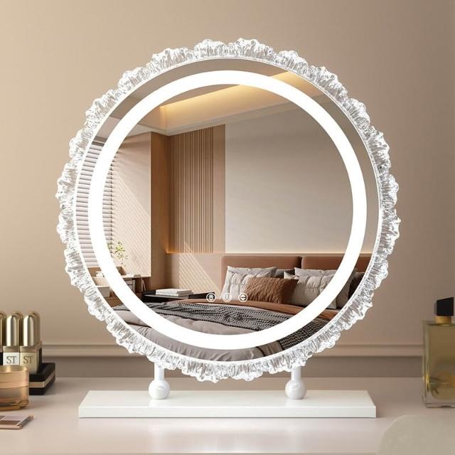 🎊新款下殺🎊化妝鏡臺式桌面帶燈梳粧檯網紅智能鏡子旋轉家用臥室高清鏡子