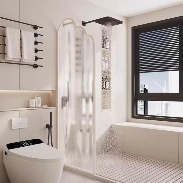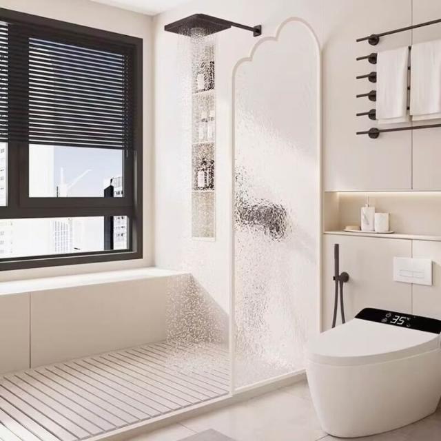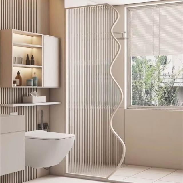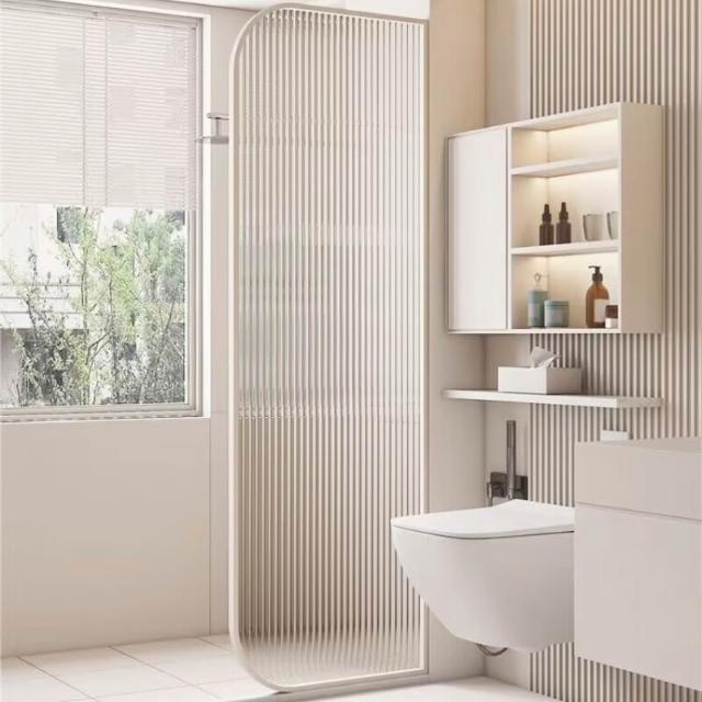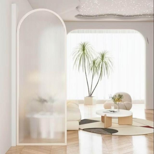 🎊熱銷爆款🎊奶油風長虹玻璃隔斷入戶客廳玄關衛生間洗漱臺半牆浴室淋浴房屏風