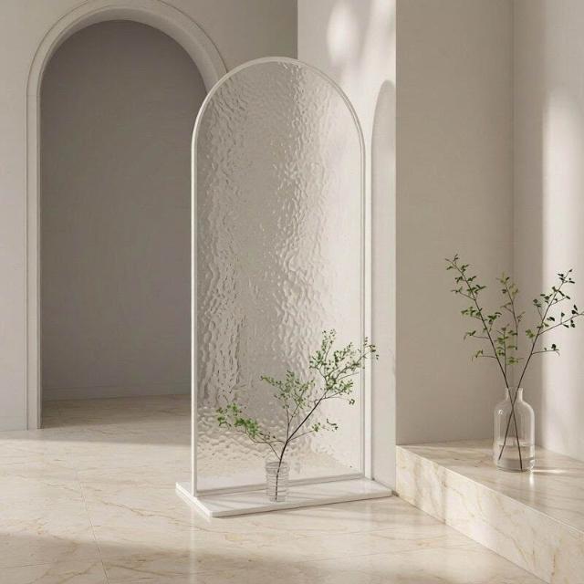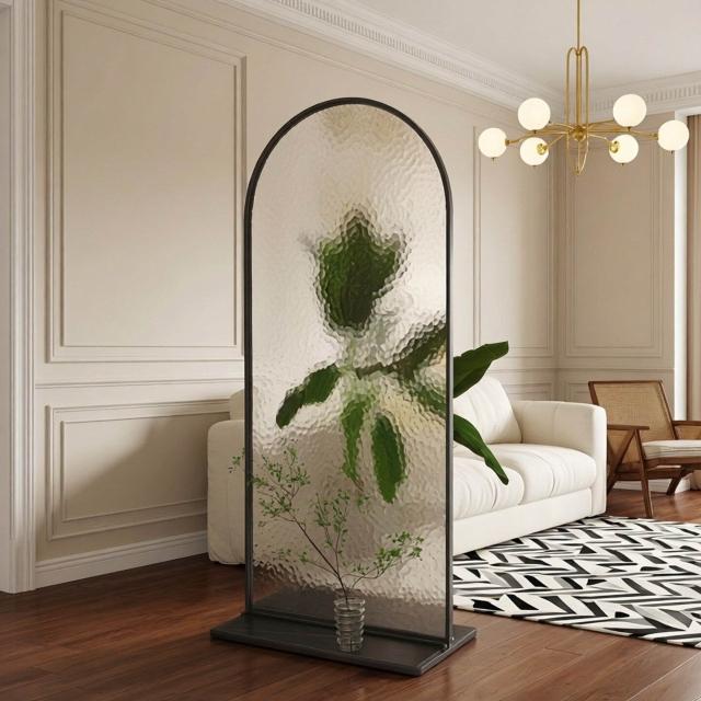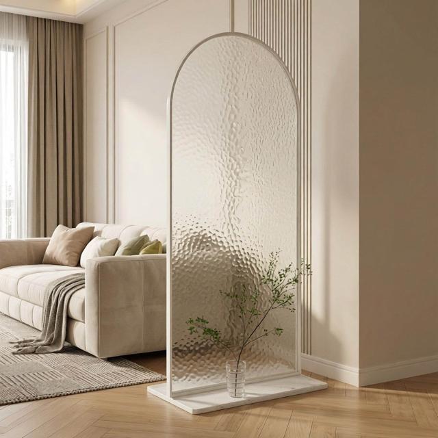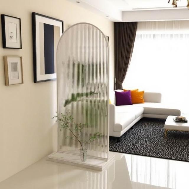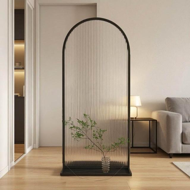 🎊熱銷爆款🎊奶白風長虹玻璃隔斷入戶門玄關沙發臥室裝飾輕奢高級感可移動屏風