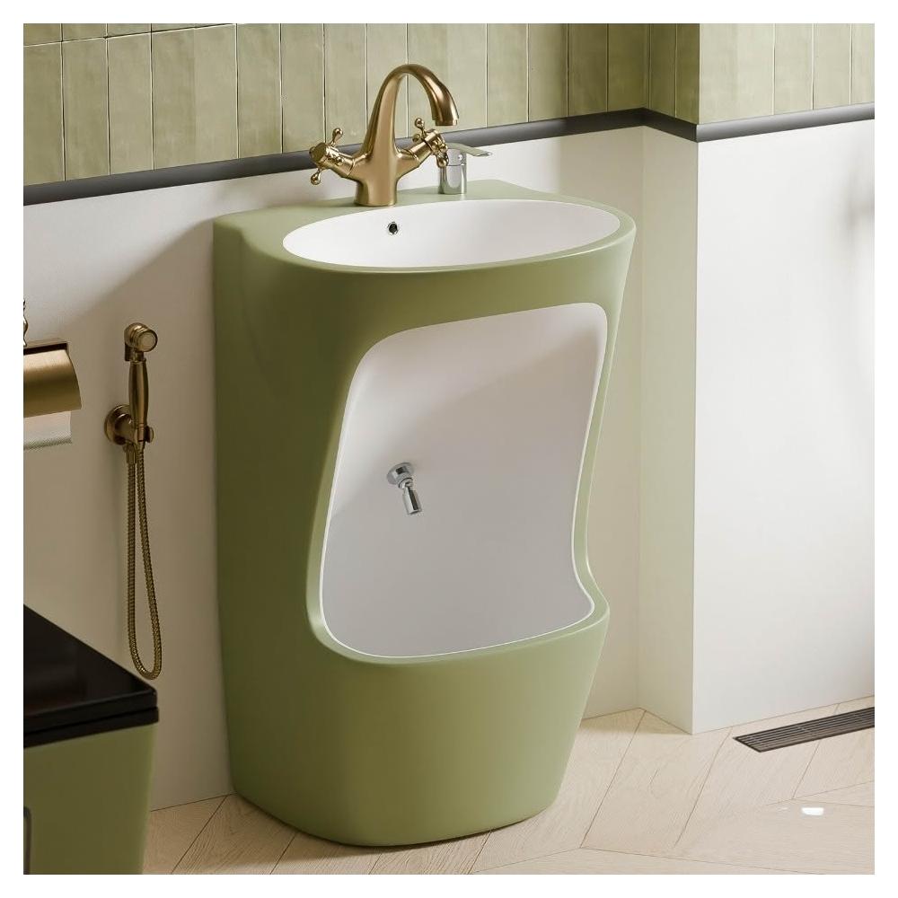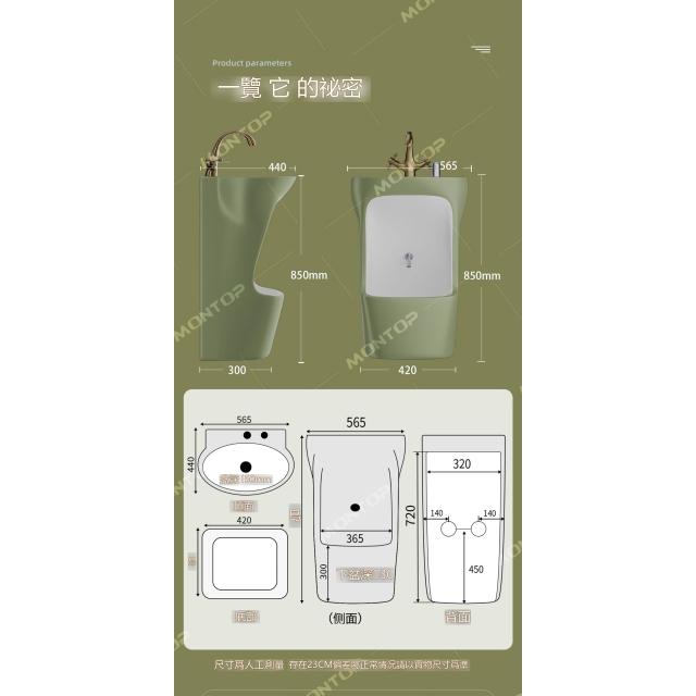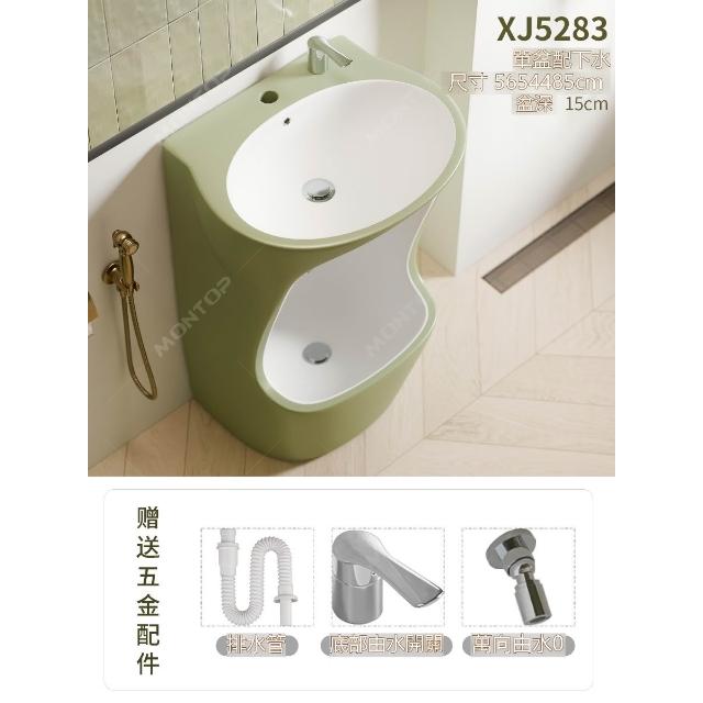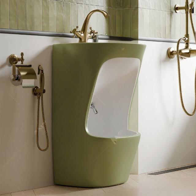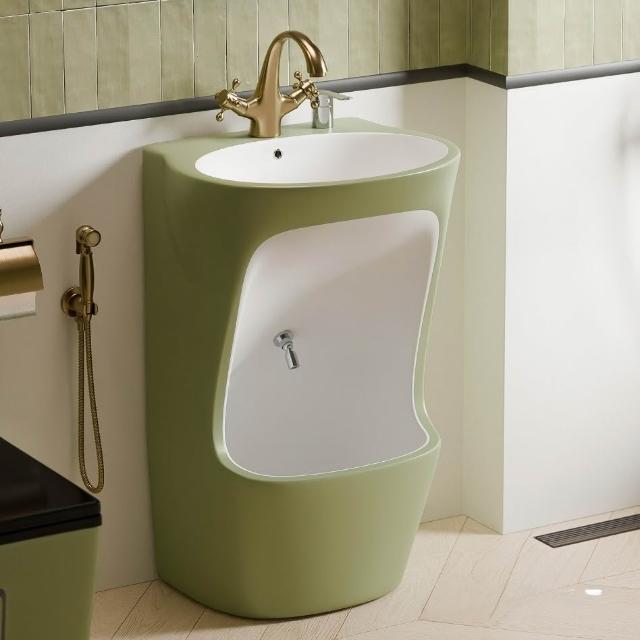 🎊新款下殺🎊復古綠陶瓷一體式家用洗手洗腳盆衛生間陽臺落地式立柱盆