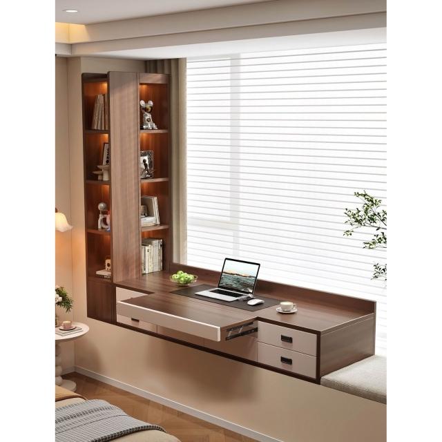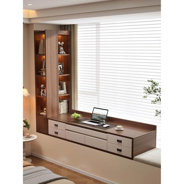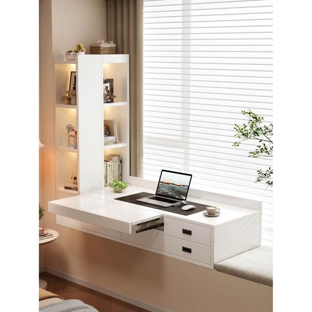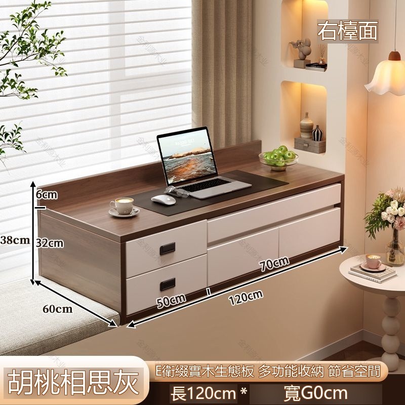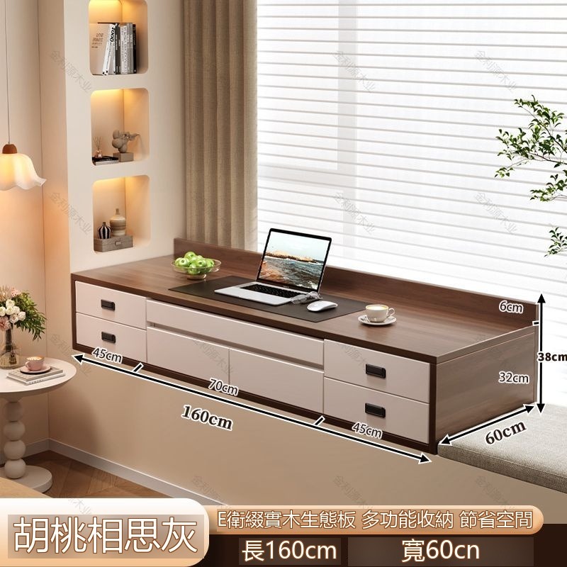 🔥新款下殺🔥現代簡約壁掛式飄窗櫃儲物櫃抽屜收納櫃極簡風書桌一體櫃
