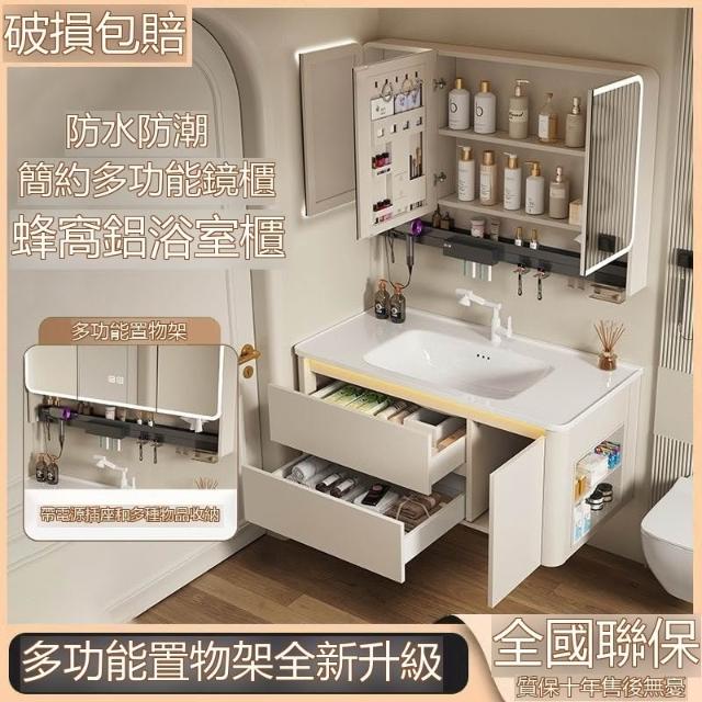 🎊新款下殺🎊蜂窩鋁浴室櫃組合 多功能智能鏡櫃 衛生間一體陶瓷盆 洗臉洗手盆 側邊櫃