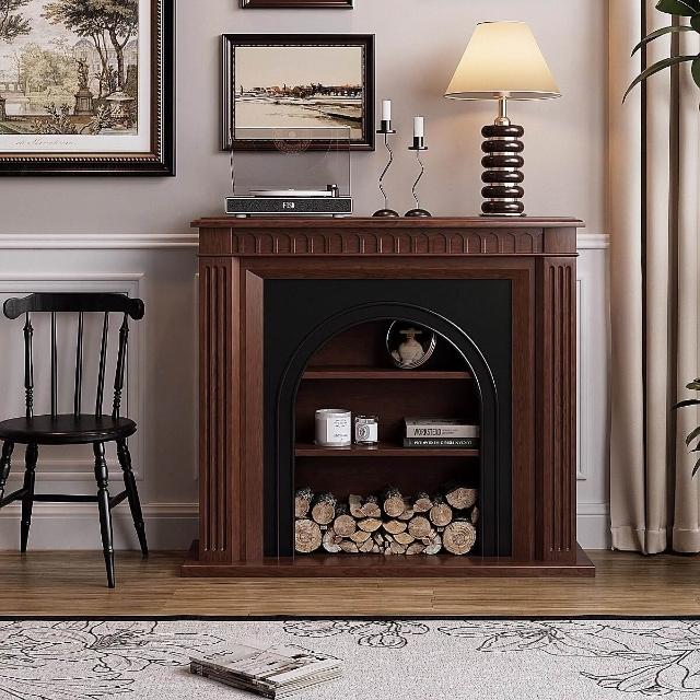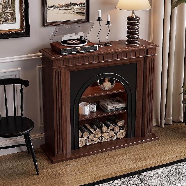✨新款上市🔥美式復古壁爐 裝飾玄關櫃 客廳櫃 歐式電子芯仿真火焰置物櫃 家用置物臺 法式玄關櫃