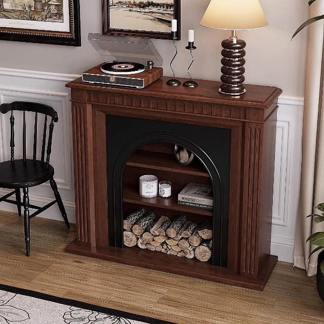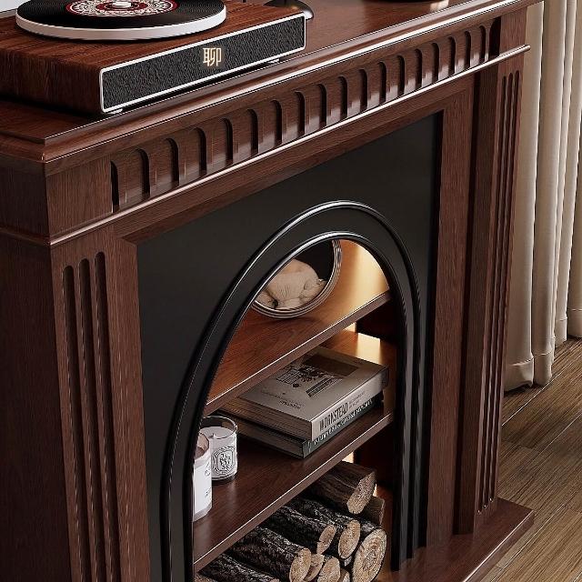 ✨新款上市🔥美式復古壁爐 裝飾玄關櫃 客廳櫃 歐式電子芯仿真火焰置物櫃 家用置物臺 法式玄關櫃
