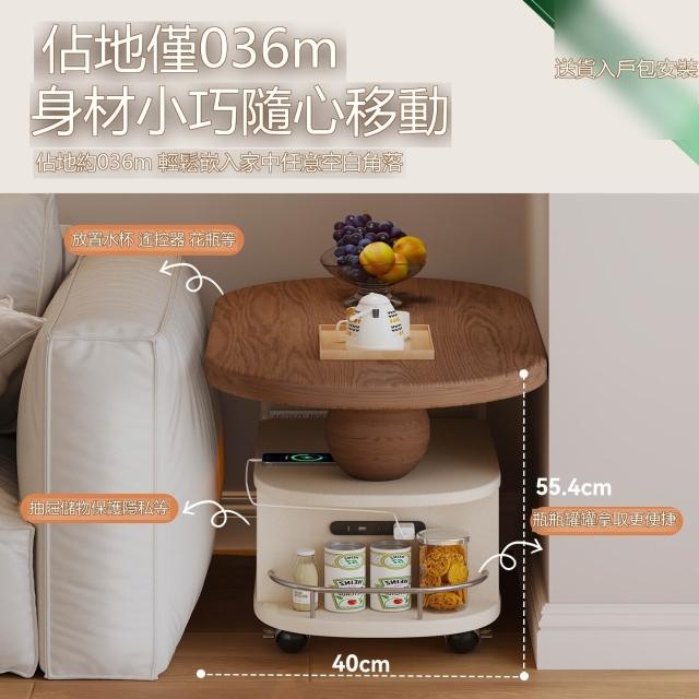 ✨新款下殺🔥中古奶油風茶几 實木茶几 可移動邊幾 客廳家用小戶型桌子 沙發邊桌 側邊收納櫃