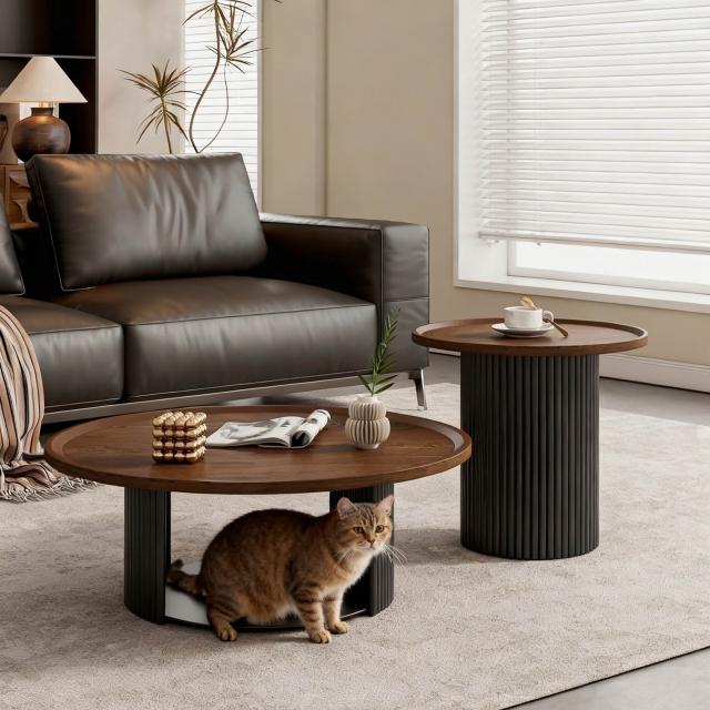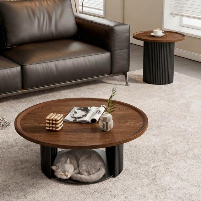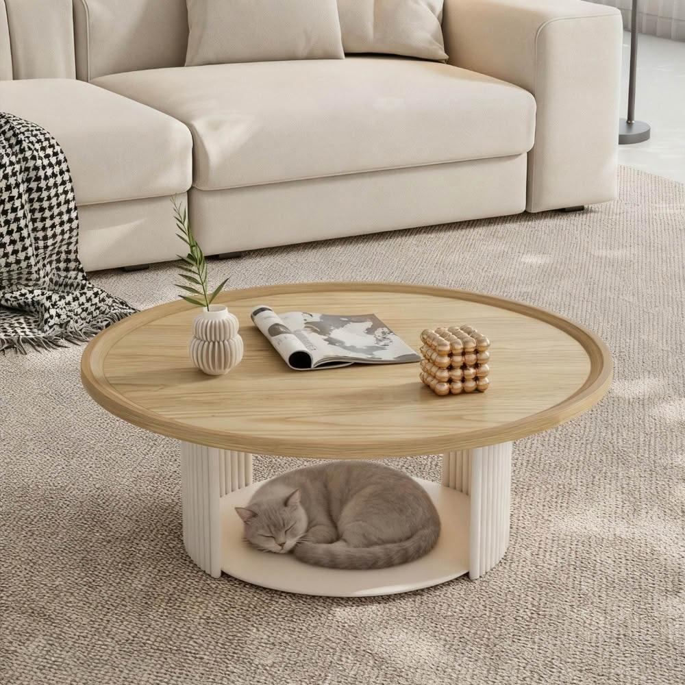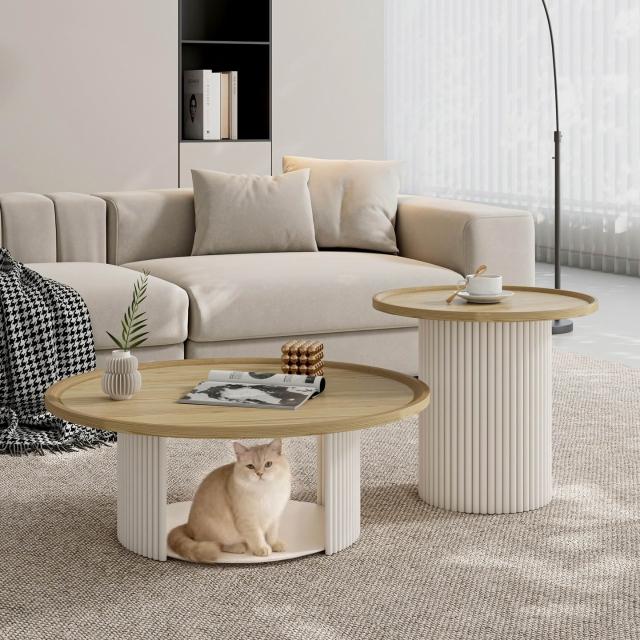 ✨新款下殺🔥奶油風茶几桌 法式輕奢高級感實木茶幾 邊幾組合 極簡小戶型桌子 客廳原木小桌子