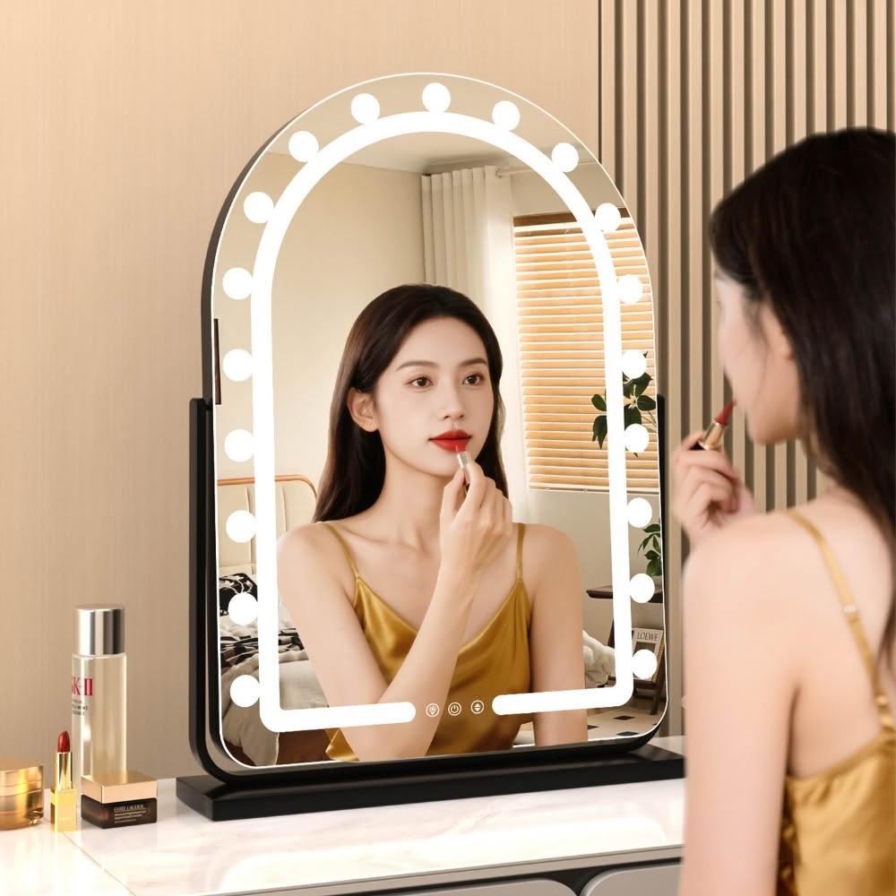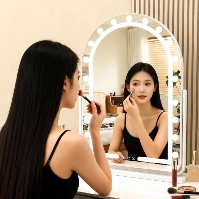 🎊熱銷爆款🎊化妝鏡帶燈臺式桌面大號智能梳妝鏡燈泡美妝鏡梳粧檯網紅鏡子