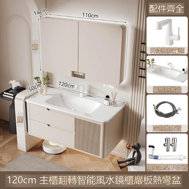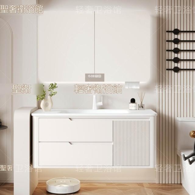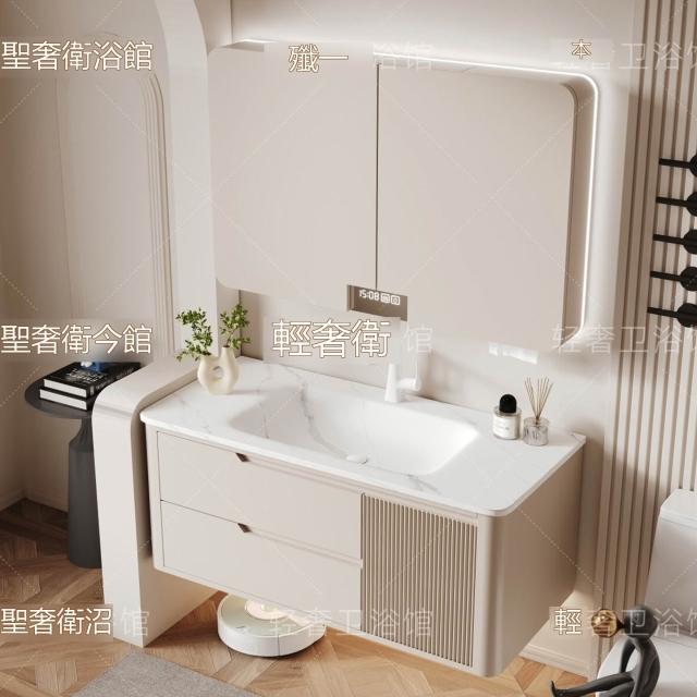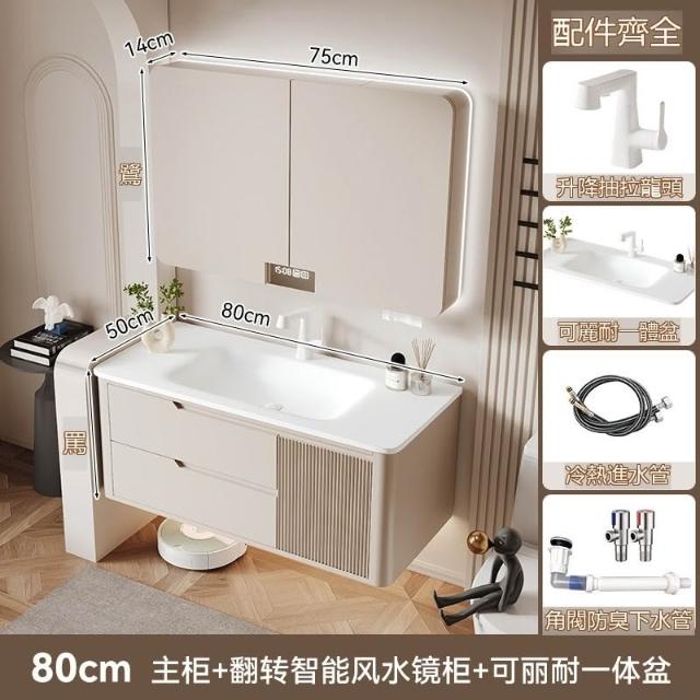 🎊新款下殺🎊奶油風可麗耐一體盆浴室櫃折疊風水鏡櫃智能衛生間洗臉洗漱臺橡木