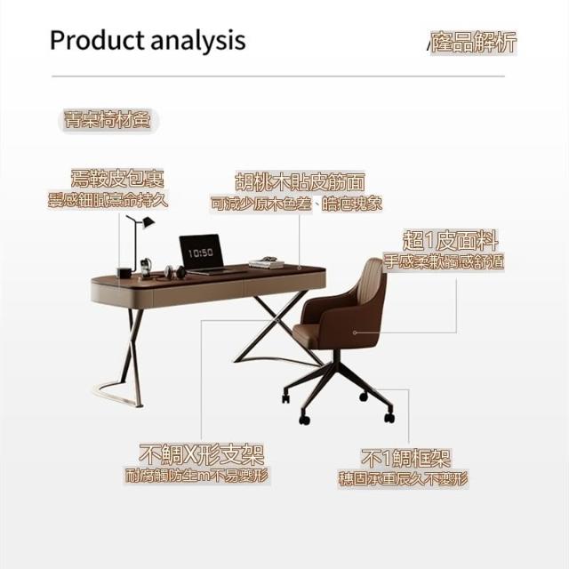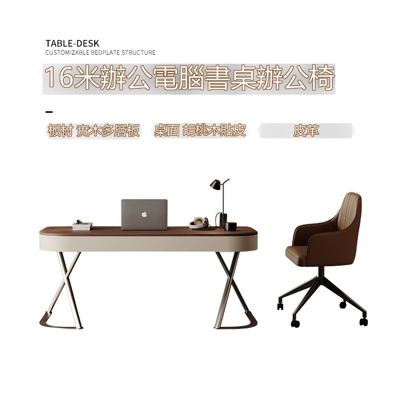 🎊新款下殺🎊整裝發貨丨全實木書桌丨馬鞍皮辦公桌丨胡桃木紋電腦辦公桌丨不鏽鋼腳設計丨多尺寸可選丨