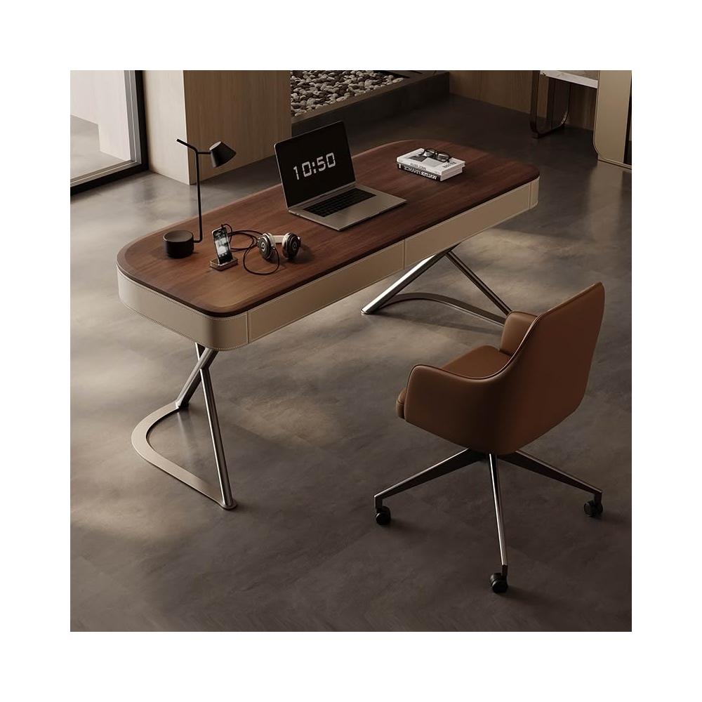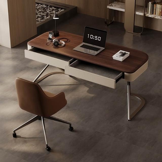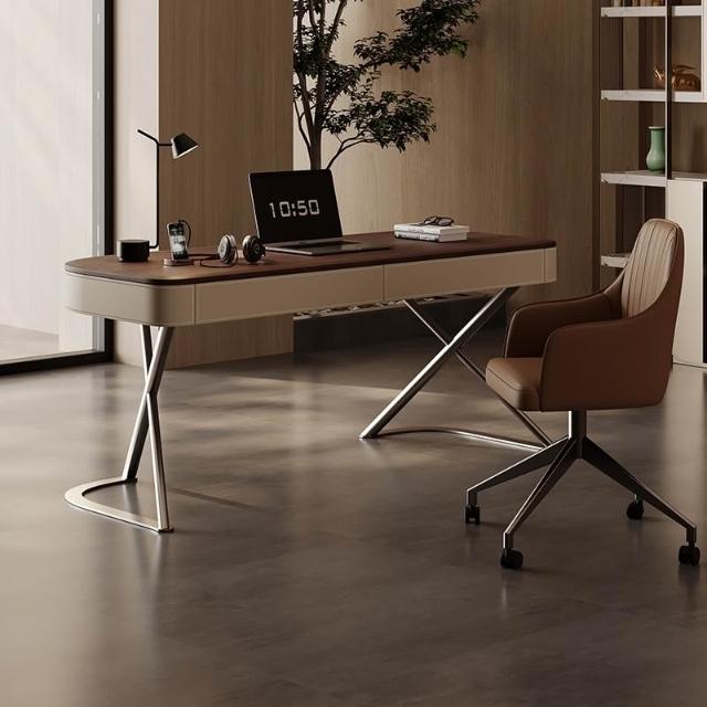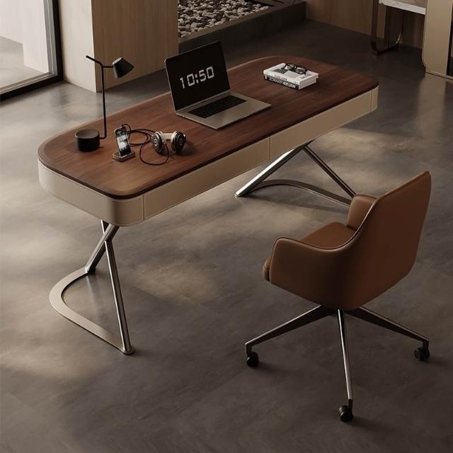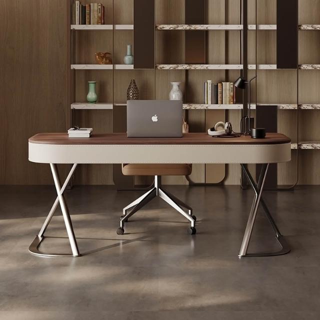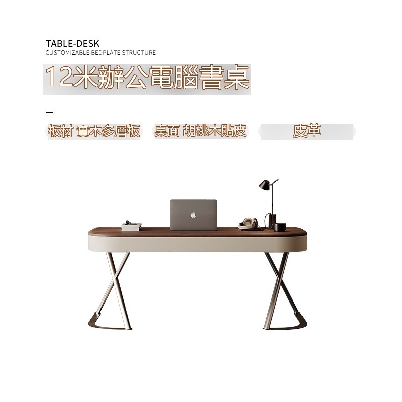 🎊新款下殺🎊整裝發貨丨全實木書桌丨馬鞍皮辦公桌丨胡桃木紋電腦辦公桌丨不鏽鋼腳設計丨多尺寸可選丨