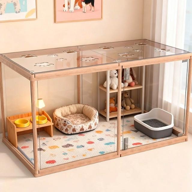 下殺🎊寵物狗貓窩實木狗狗貓咪圍欄隔離柵欄狗籠小型犬專用室內透明圍欄