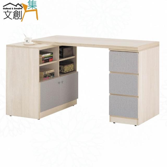 文創集愛米利雙色4尺二門三抽書桌(可伸縮&調整方位擺設)