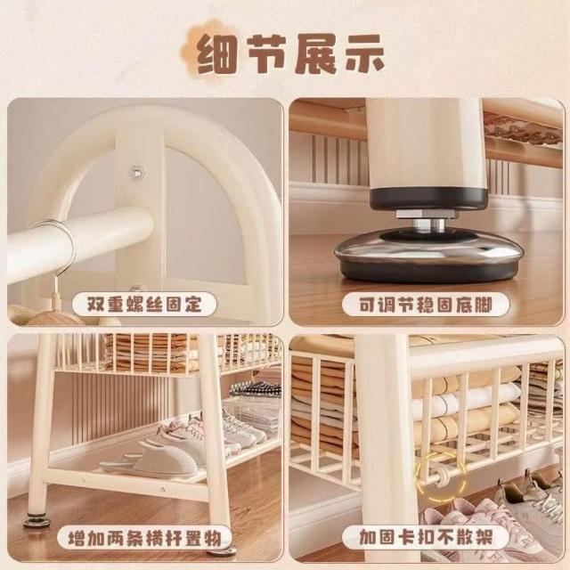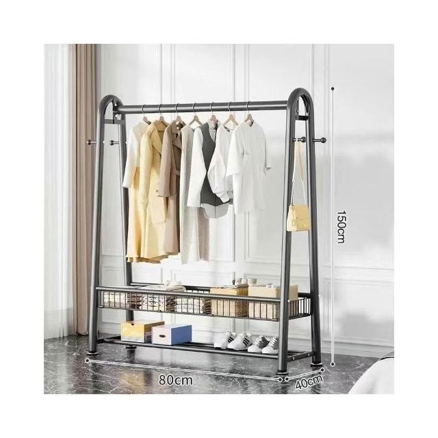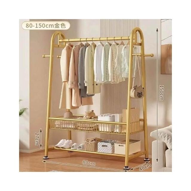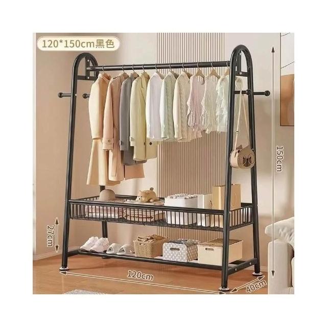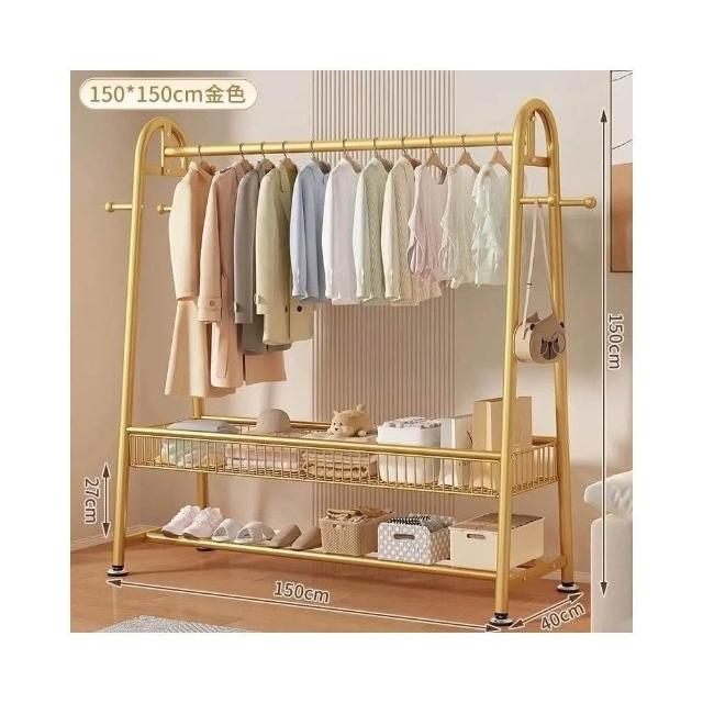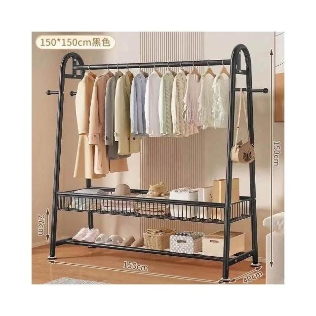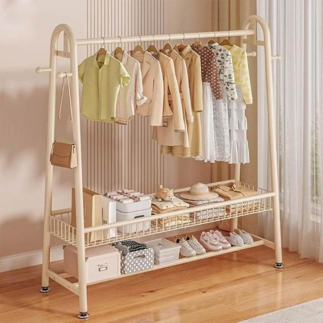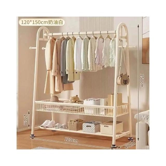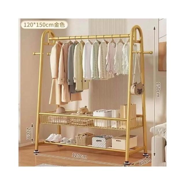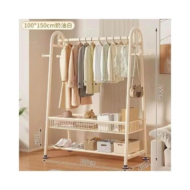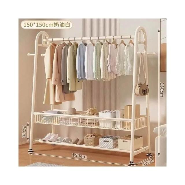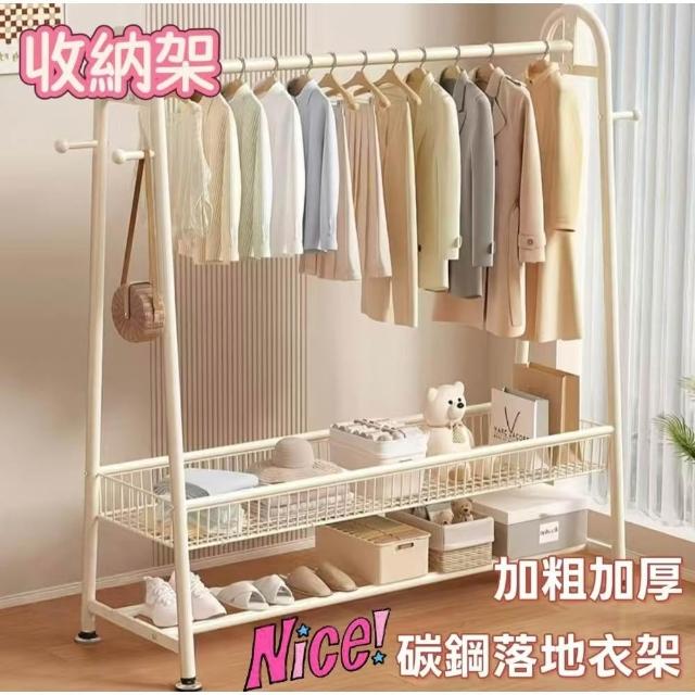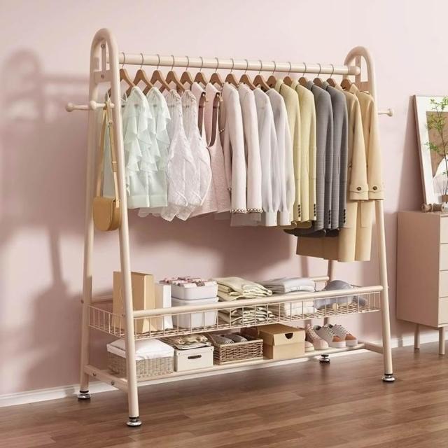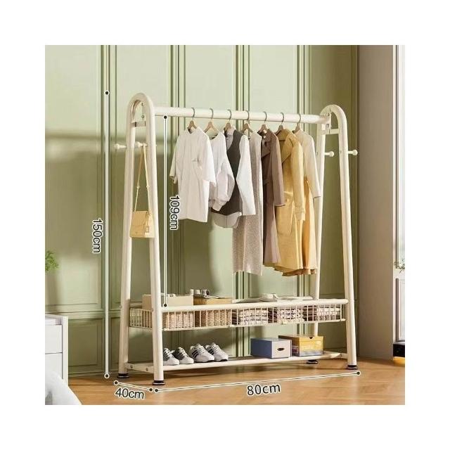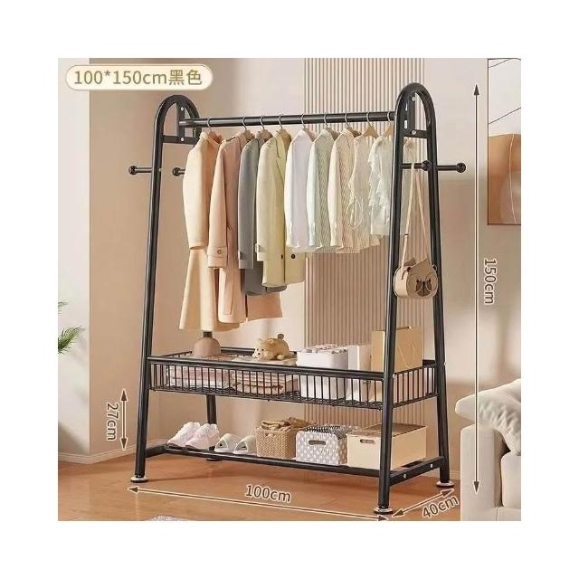 雙層落地衣帽架 臥室家用立式掛衣架 陽台簡易晾衣架 宿舍收納架 多功能可移動 加厚鋼管 省空間