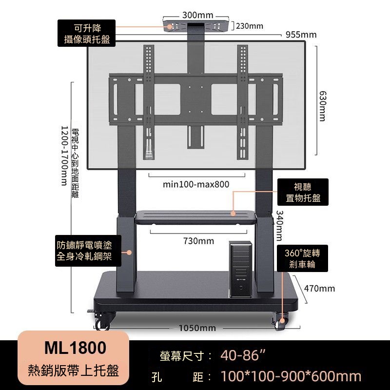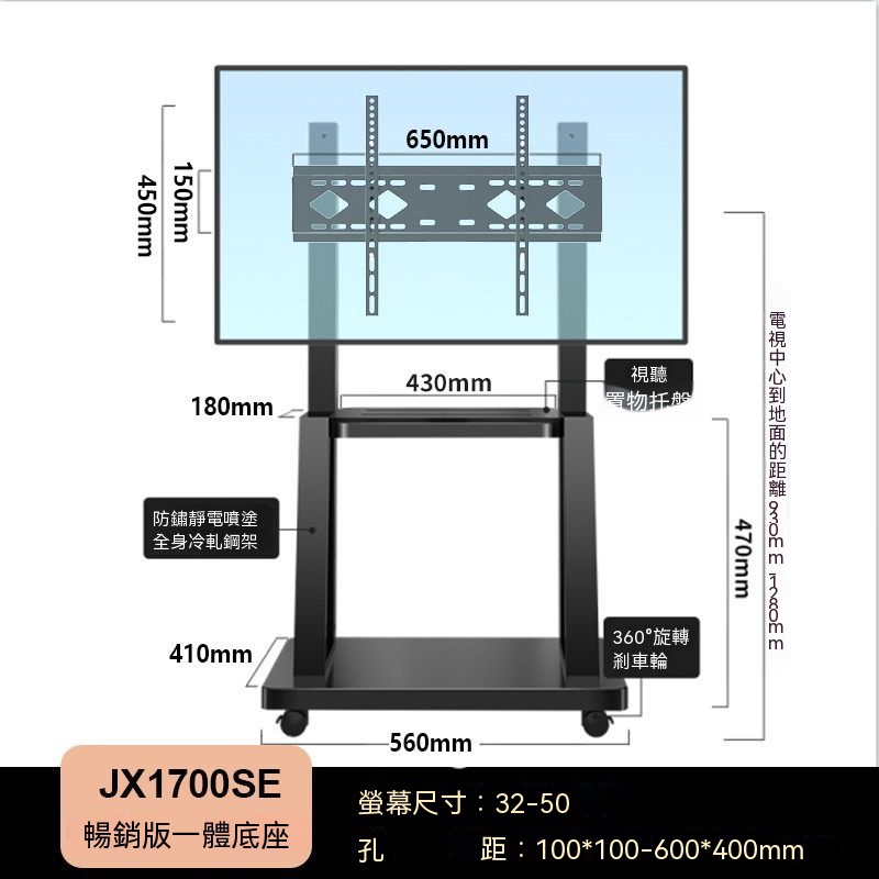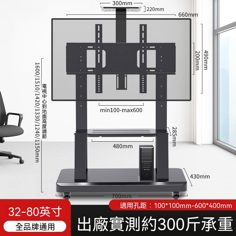 通用款移動電視架 電視架 可移動電視機支架 電視機落地架 電視置物架 看板架推車架 移動式 含發票