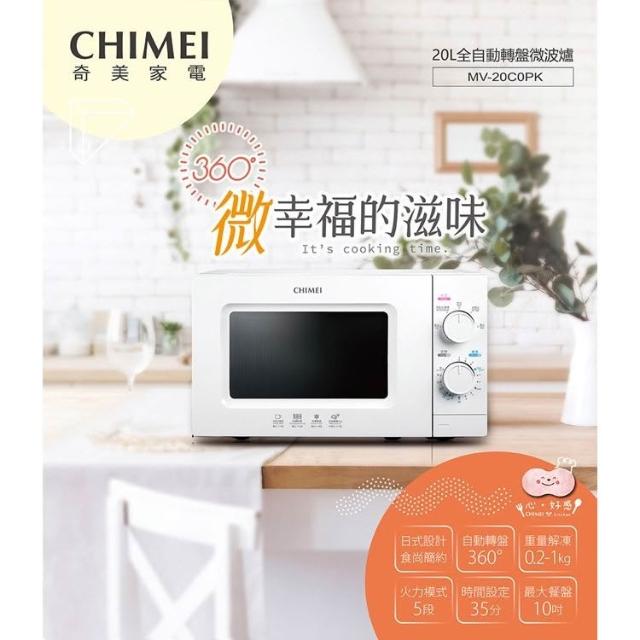 CHIMEI 奇美20L全自動轉盤微波爐 MV-20C0PK免運費