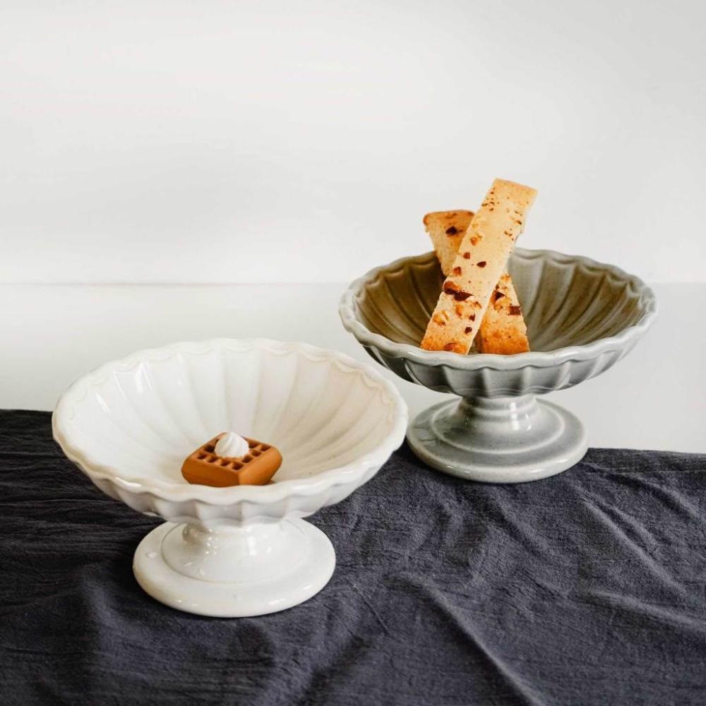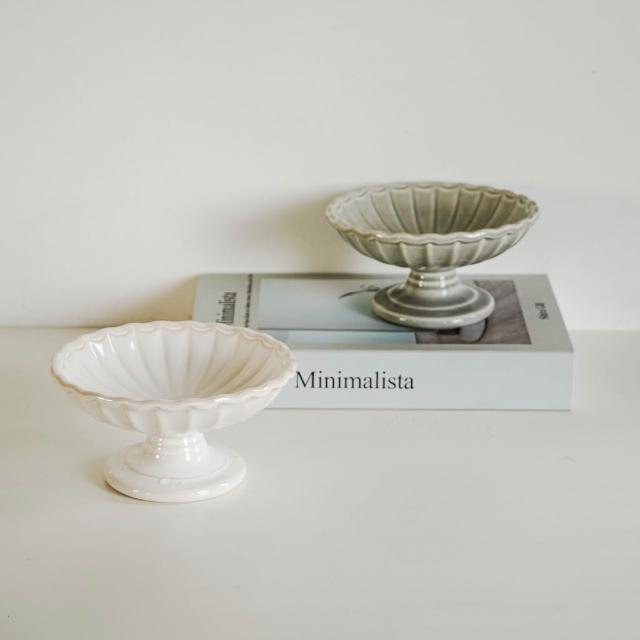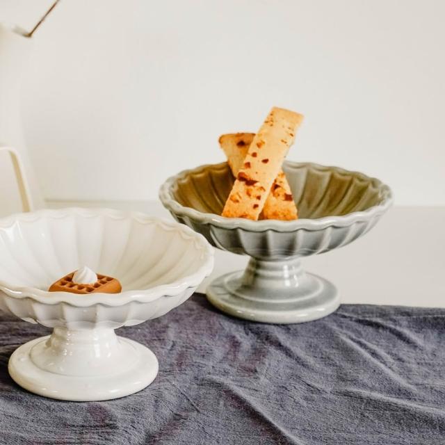UDlab|歐式工藝浮雕高腳盤 單菊瓣 陶瓷 水果盤 下午茶點糕點乾果盤糕點盤 點心盤 兩款售 AD03-019