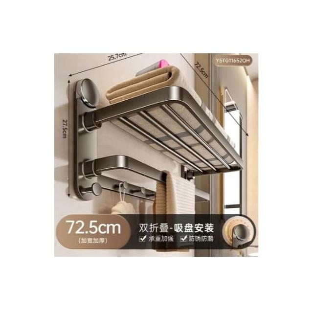 🏆台灣現貨 免運!雙層可折疊浴巾架| 4個吸盤強力承重 省空間浴室毛巾架 免打孔置物架 折疊浴袍架 收納架