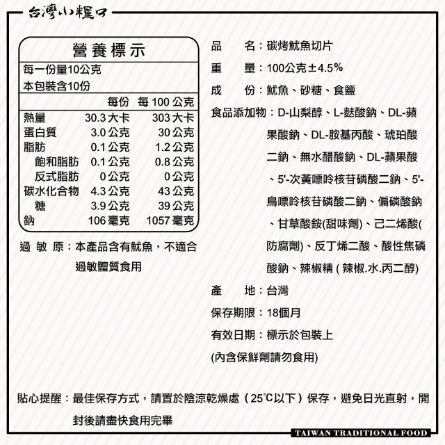 台灣小糧口碳烤魷魚切片 100g*1包