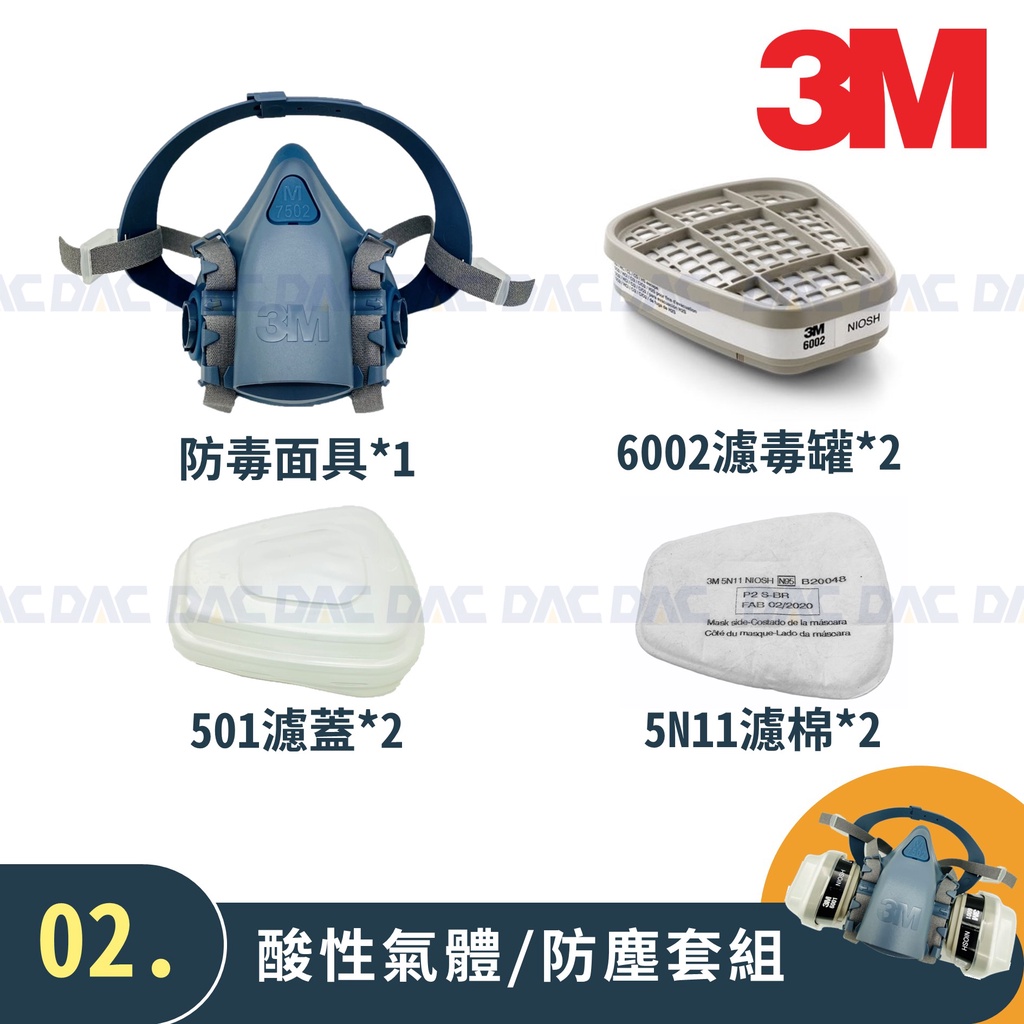 3M3M 7502 防毒面具(半面體、雙罐式)(防毒面罩套組含濾毒罐、濾棉、濾棉蓋)【傑群工業補給站】