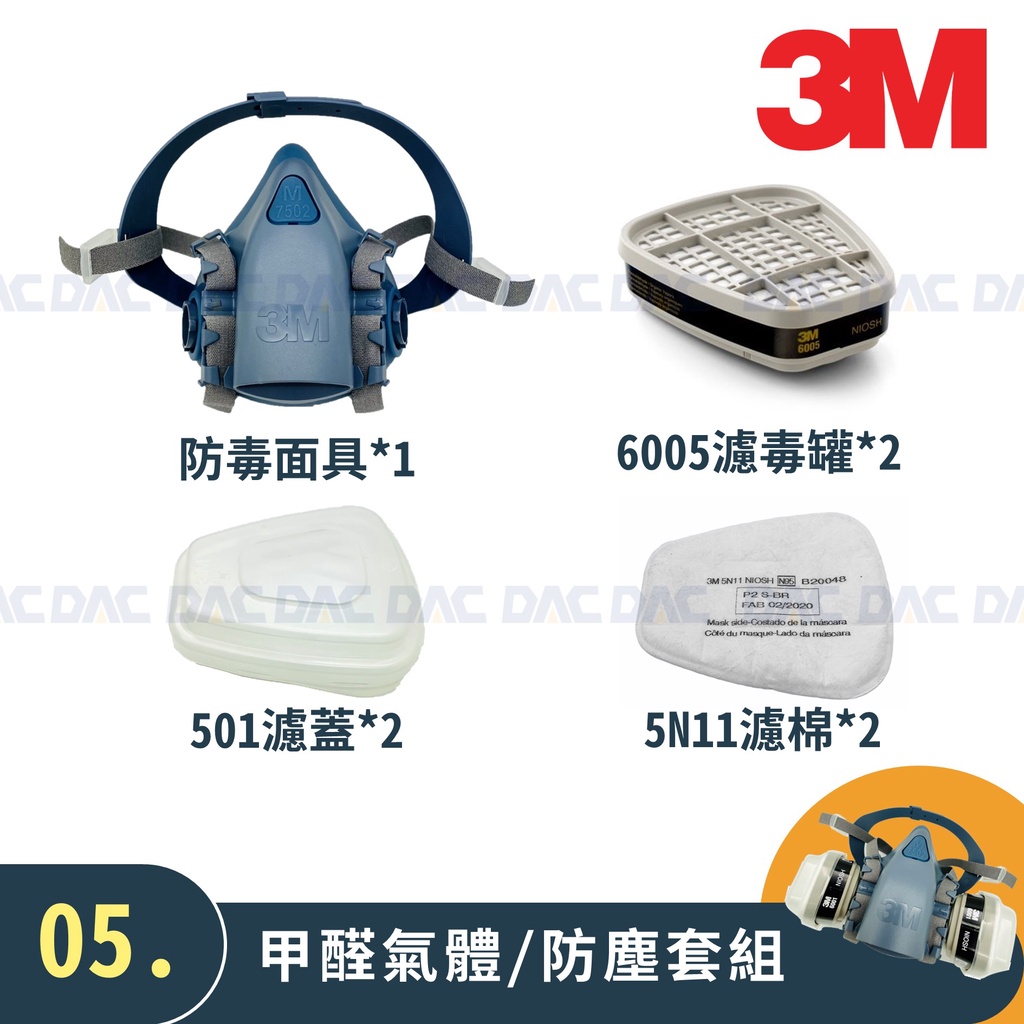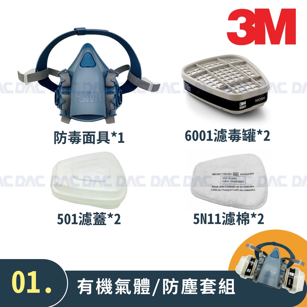 3M3M 7502 防毒面具(半面體、雙罐式)(防毒面罩套組含濾毒罐、濾棉、濾棉蓋)【傑群工業補給站】
