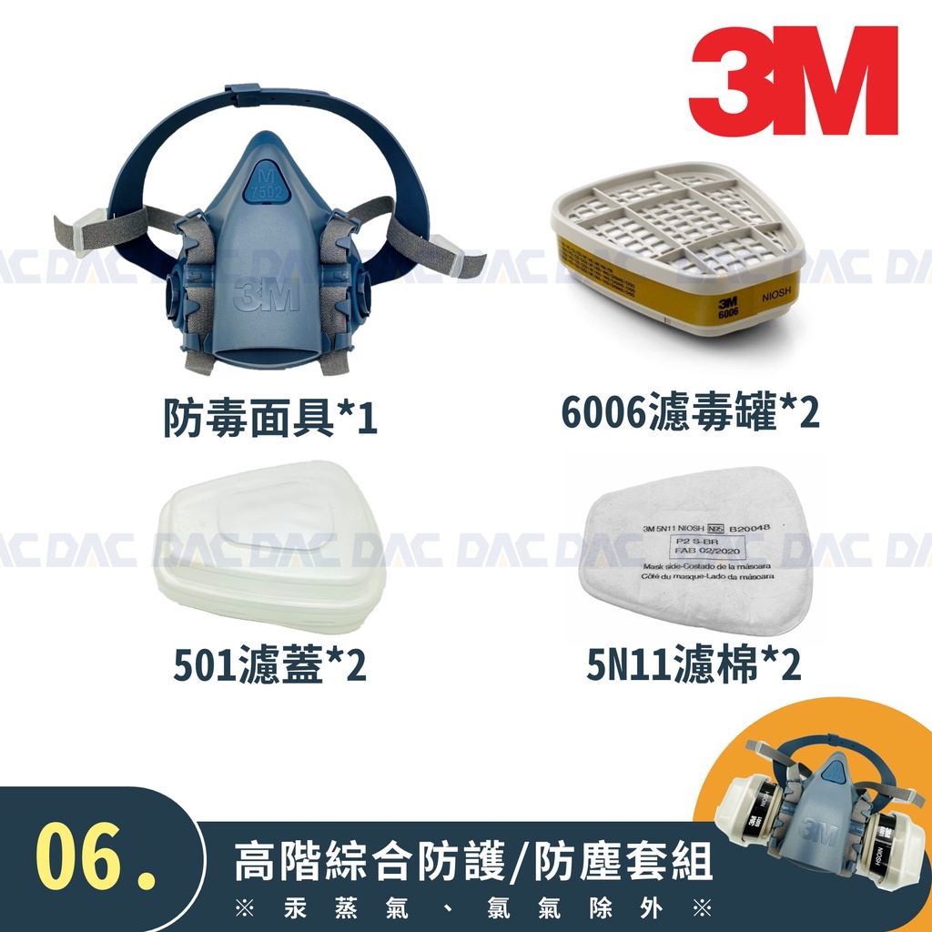3M3M 7502 防毒面具(半面體、雙罐式)(防毒面罩套組含濾毒罐、濾棉、濾棉蓋)【傑群工業補給站】