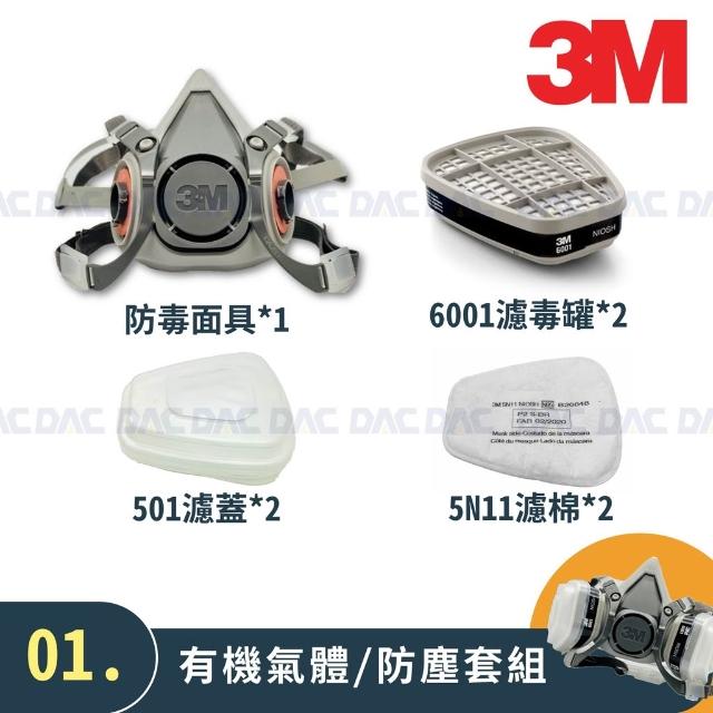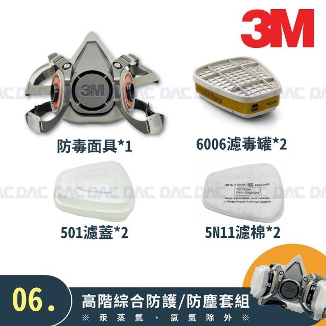 3M3M 6200 防毒面具(半面體、雙罐式)(防毒面罩套組含濾毒罐、濾棉、濾蓋)【傑群工業補給站】