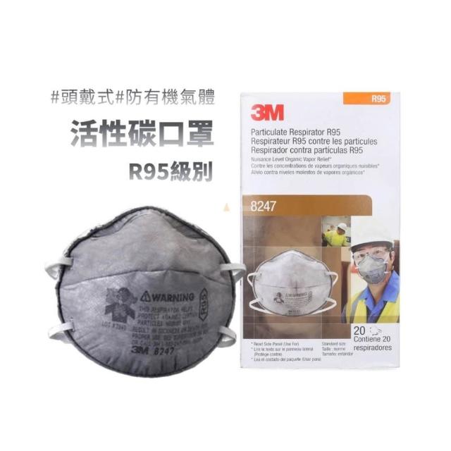 3M3M R95 有機氣體,拋棄式活性碳防塵口罩 8247, 20片/盒,(工業用頭帶式) 【傑群工業補給站】