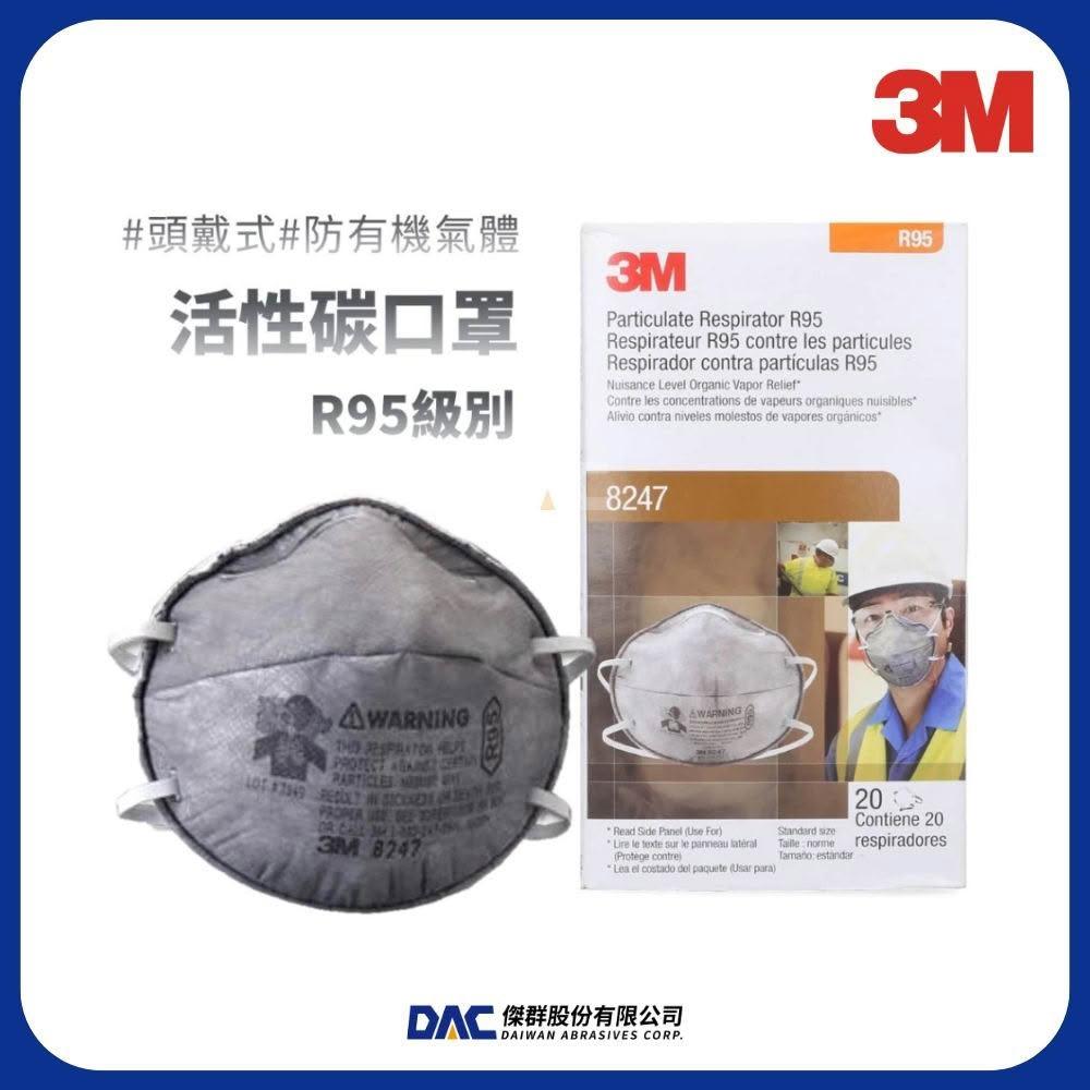 3M3M R95 有機氣體,拋棄式活性碳防塵口罩 8247, 20片/盒,(工業用頭帶式) 【傑群工業補給站】