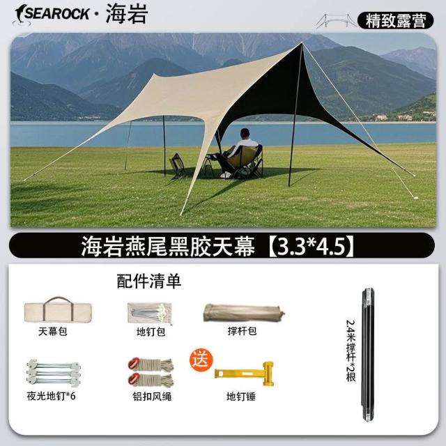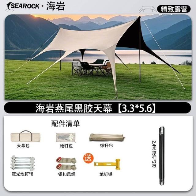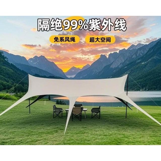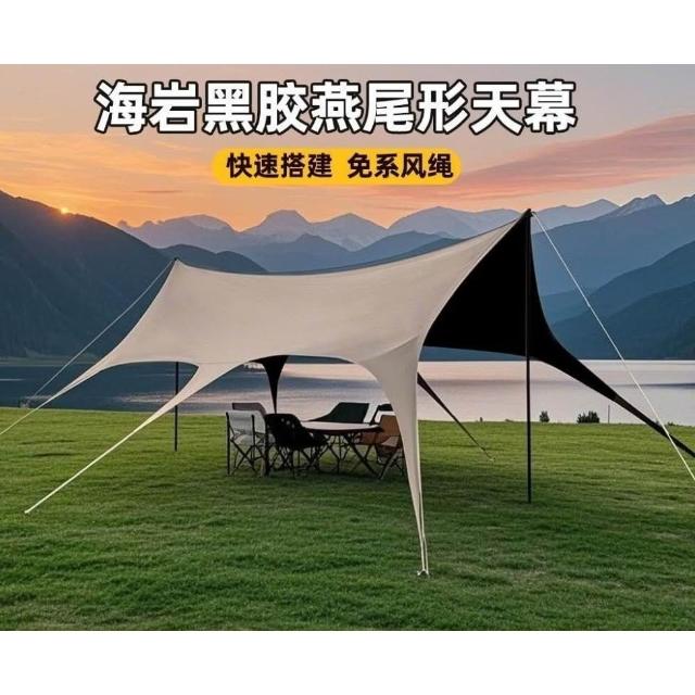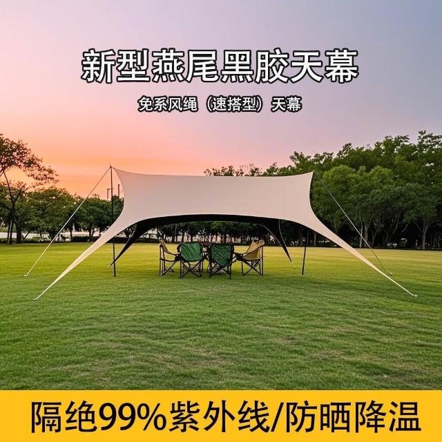 👑金玉滿堂👑戶外天幕帳篷黑膠八角天幕防雨防曬免繫繩燕尾蝶形遮陽棚露營必備