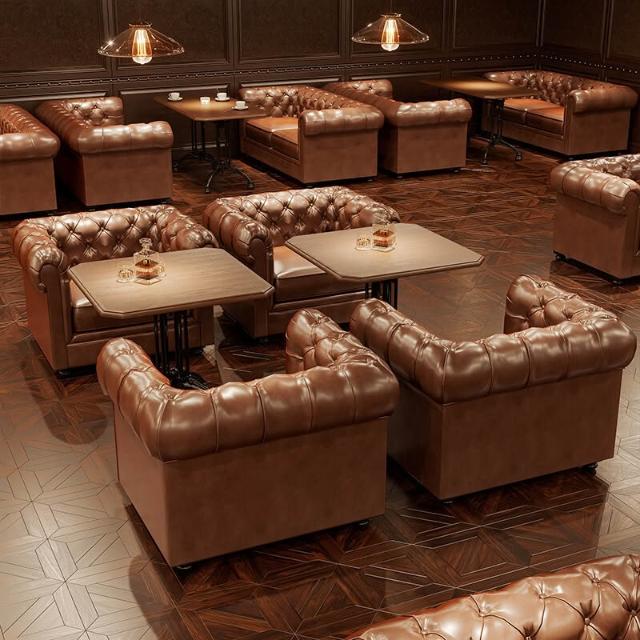 👑金玉滿堂👑酒吧卡座沙發美式復古餐桌椅音樂咖啡西餐廳卡座沙發椅酒店大堂接待座椅