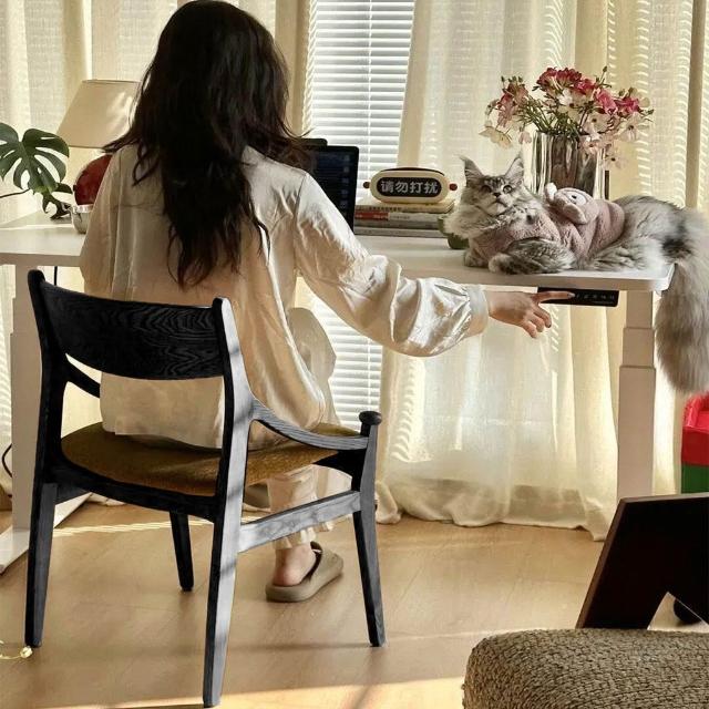 👑金玉滿堂👑中古實木軟包餐椅家用法式小戶型靠背椅單人辦公書椅臥室梳化妝凳子