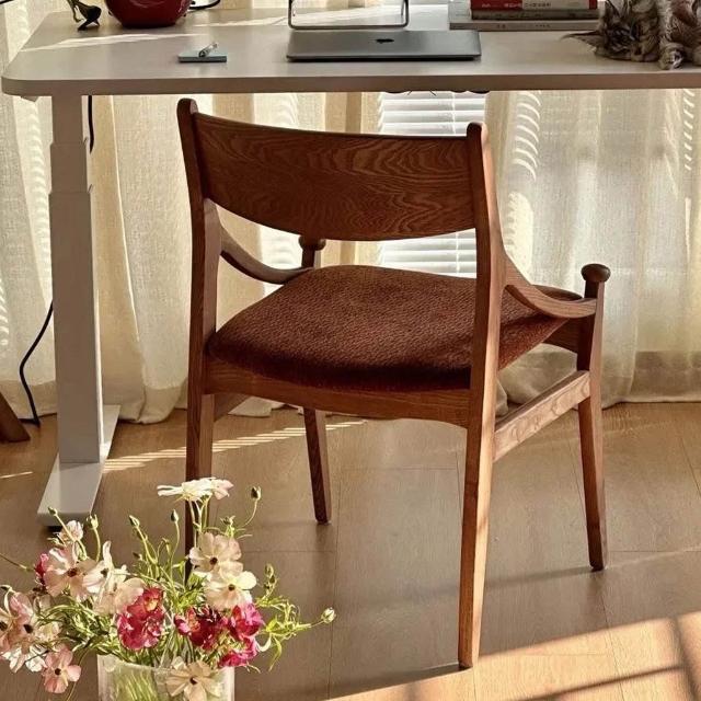 👑金玉滿堂👑中古實木軟包餐椅家用法式小戶型靠背椅單人辦公書椅臥室梳化妝凳子