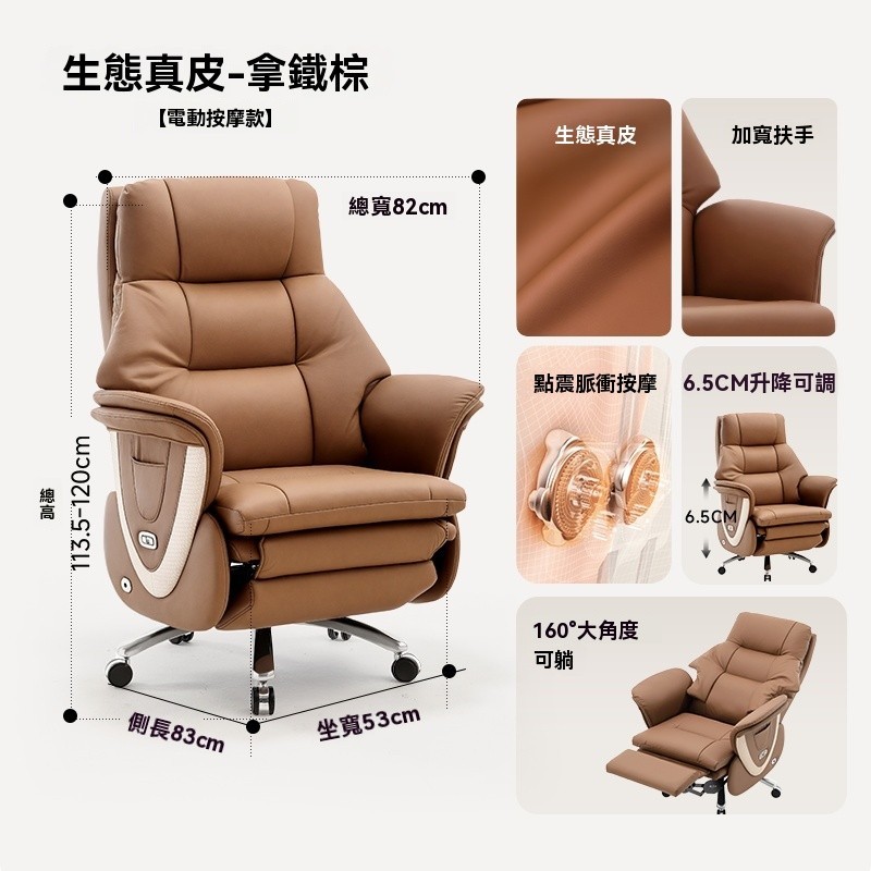 👑金玉滿堂👑電動老板椅可躺真皮電腦椅久坐辦公室按摩椅午睡人體工學椅