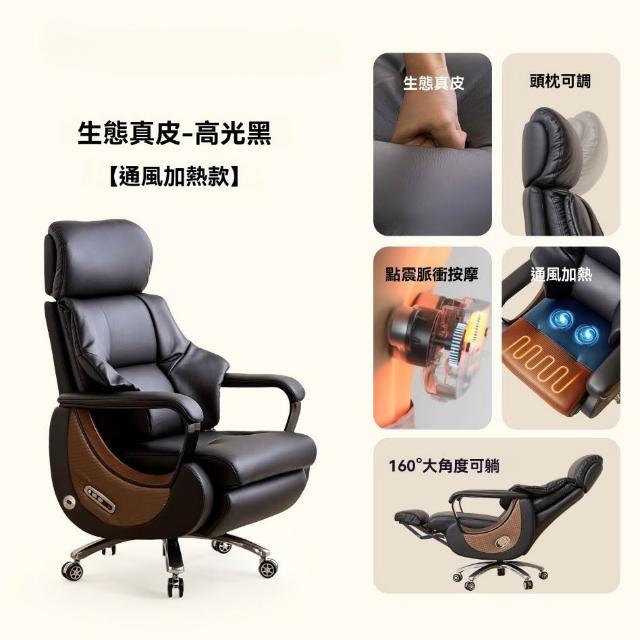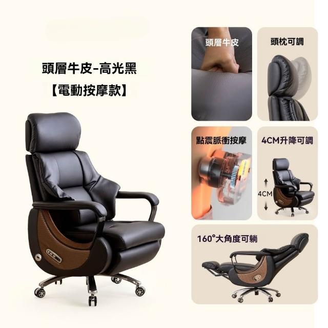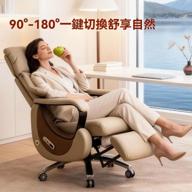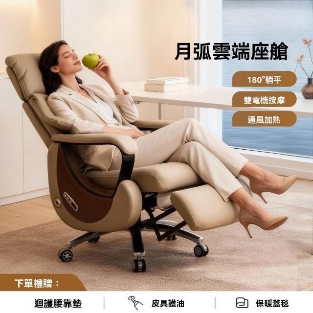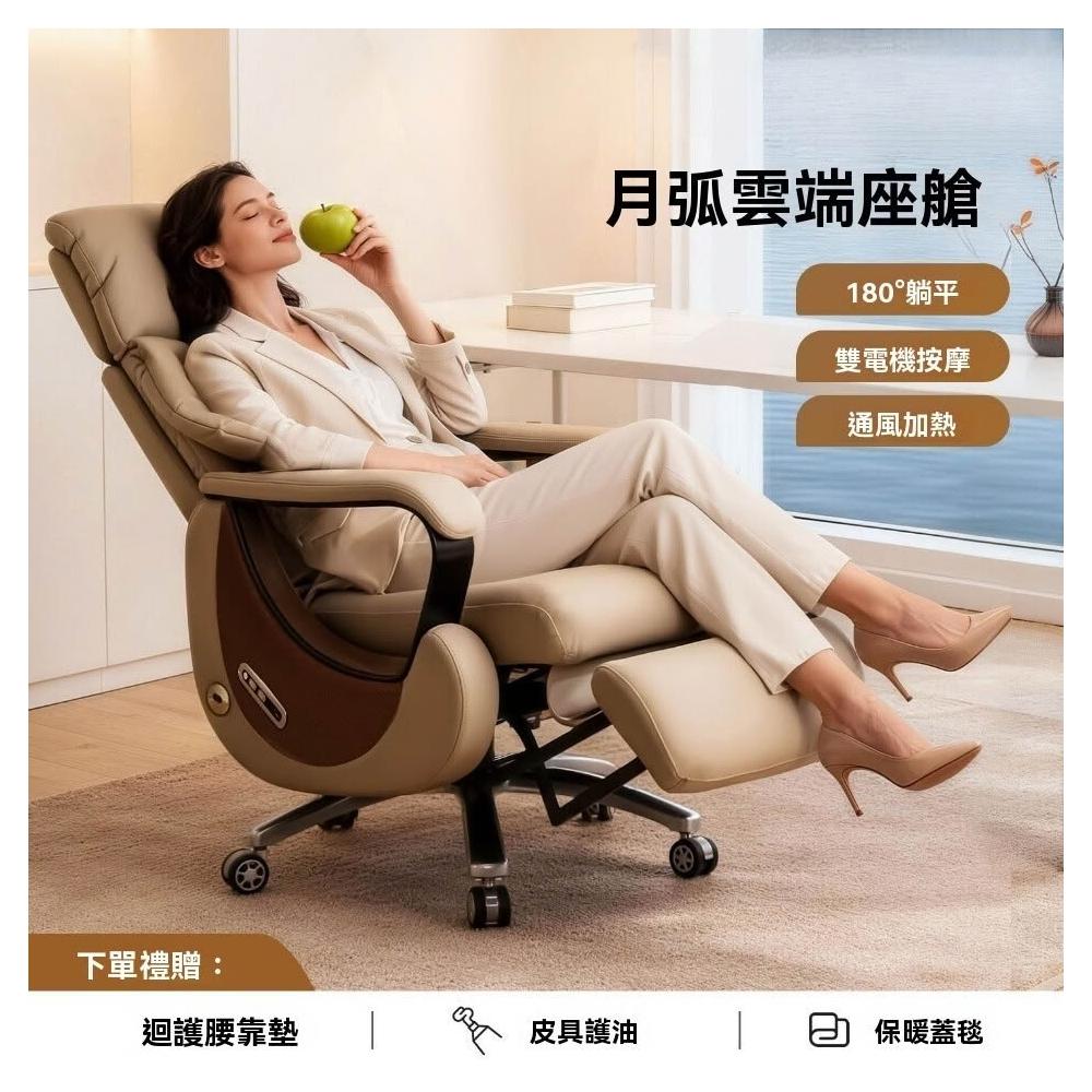 👑金玉滿堂👑高端電動躺椅老闆椅子真皮懶人按摩通風座艙奶油風辦公椅