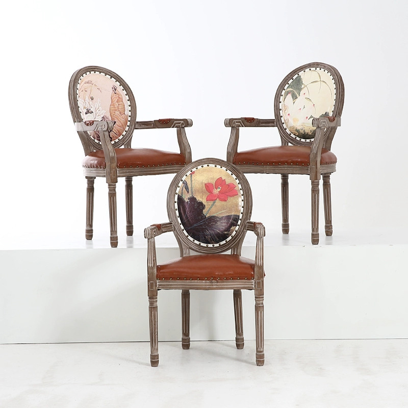 👑金玉滿堂👑木椅子餐椅休閒椅復古做舊家用餐廳餐桌椅咖啡廳帶扶手靠背凳子北歐式美式簡約鄉村化妝椅