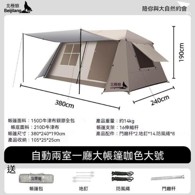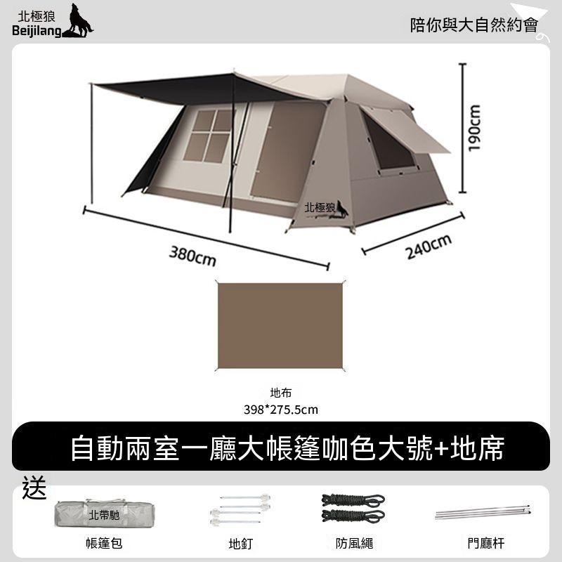 👑金玉滿堂👑 屋脊13自動速開帳篷天幕二合一超大戶外野營黑膠防曬防暴雨帳篷/戶外帳篷