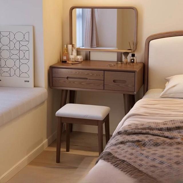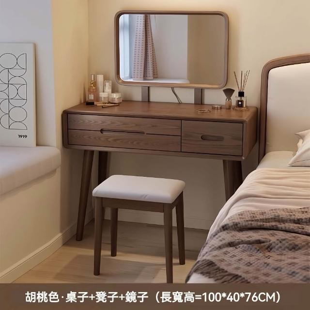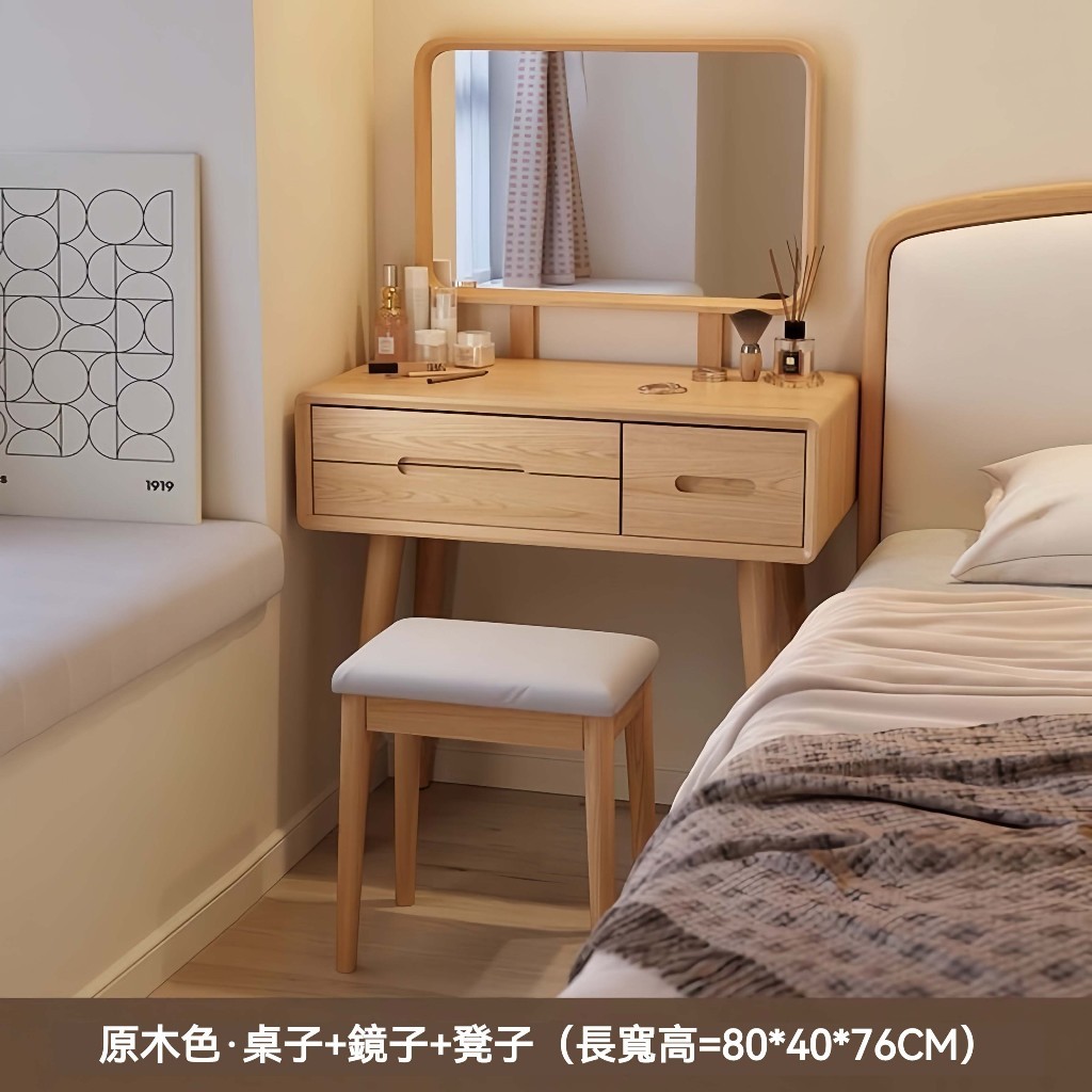 👑金玉滿堂👑『』🔥整裝免組裝新中式梳妝檯實木化妝檯臥室小型桌子現代簡約風化妝櫃化妝桌多功能收納化妝桌小戶型梳妝桌