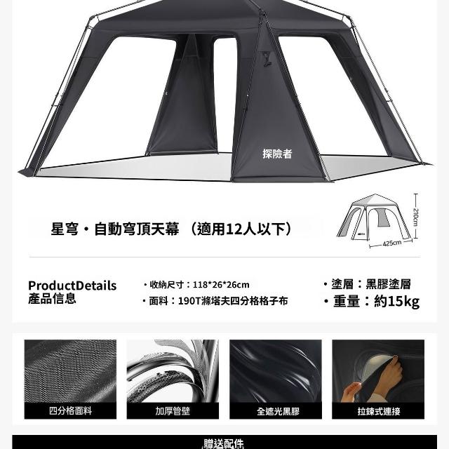 👑金玉滿堂👑 黑膠速開免搭建穹頂天幕帳篷戶外露營裝備防曬防雨遮陽棚防暴雨