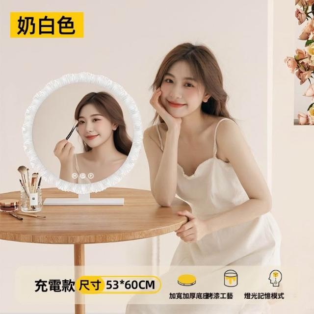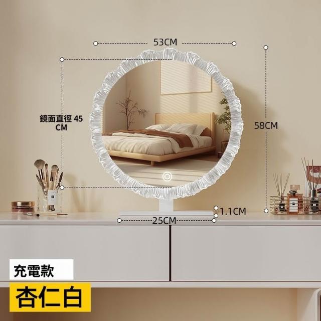 👑金玉滿堂👑 歐式化妝鏡帶燈桌面臺式led燈輕奢智能充電臥室網紅梳妝臺單面鏡