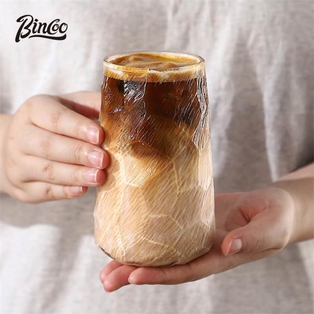 BINCOO玻璃咖啡杯 耐冷耐熱玻璃杯450ml 高檔精致複古美式
