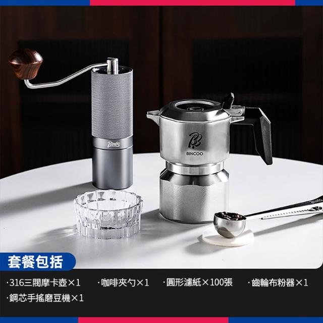 BINCOO三閥316不鏽鋼摩卡壺 濃縮意式咖啡機套裝 全鋼咖啡壺